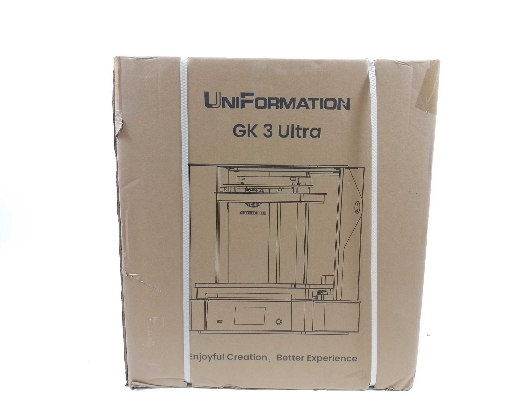 Uniformation 3D-Printer Resin GK3 Ultra - DKI00289. Uniformation GK3 Ultra 16K is een professionele resin 3D-printer met groot bouwvolume (300×160×300 mm) en haarscherpe 16K-resolutie (20×26 µm pixels). Het robuuste, trillingsarme railsysteem en automatische harsaanvoer zorgen voor consistente, detailrijke prints. Bedien eenvoudig via 5″ touchscreen, wifi/ethernet of USB; compatible met UniFormation Slicer, Chitubox en Lychee. Handige lekhanger en temperatuurbewaking verbeteren afwerking en betrouwbaarheid—ideaal voor prototyping, miniaturen en kleinschalige serieproductie. Het vat biedt 1100 ml capaciteit en verbruikt 200W.
