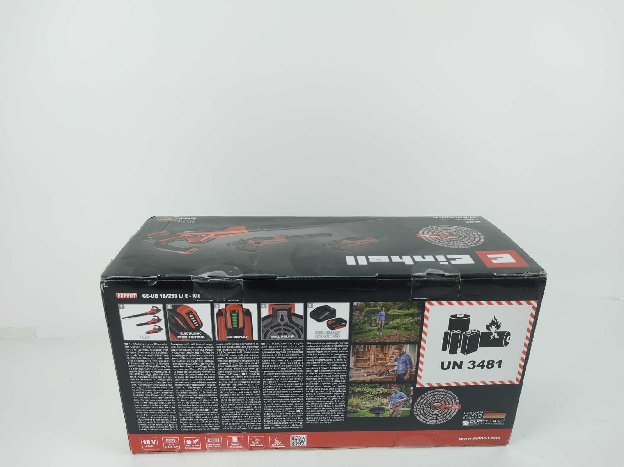 Einhell Accu Blazer - GE-UB 18/250 Li E Kit. De Einhell GE-UB 18/250 Li E accu blazer is een veelzijdige krachtpatser voor tuin, werkplaats en barbecue. Dankzij de 3-delige blaasbuis gebruik je hem als bladblazer, werkplaatsblazer of precisiehulp bij het