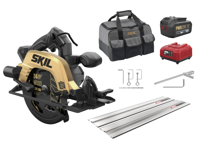 Skil Accu Cirkelzaag Brushless 20V - 3575DB. De SKIL 3575DB 20V Brushless cirkelzaag levert krachtige zaagprestaties met een maximale zaagdiepte van 66 mm. De borstelloze motor zorgt voor extra duurzaamheid en efficiënt energieverbruik. Dankzij de meegeleverde geleiderails zaag je kaarsrechte lijnen met precisie. Deze complete set bevat een 4,0 Ah accu, snellader en opbergtas. Perfect voor zowel professionals als doe-het-zelvers die nauwkeurig en comfortabel willen werken met optimale controle.