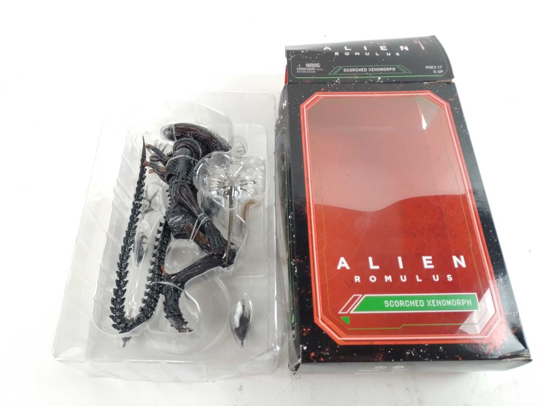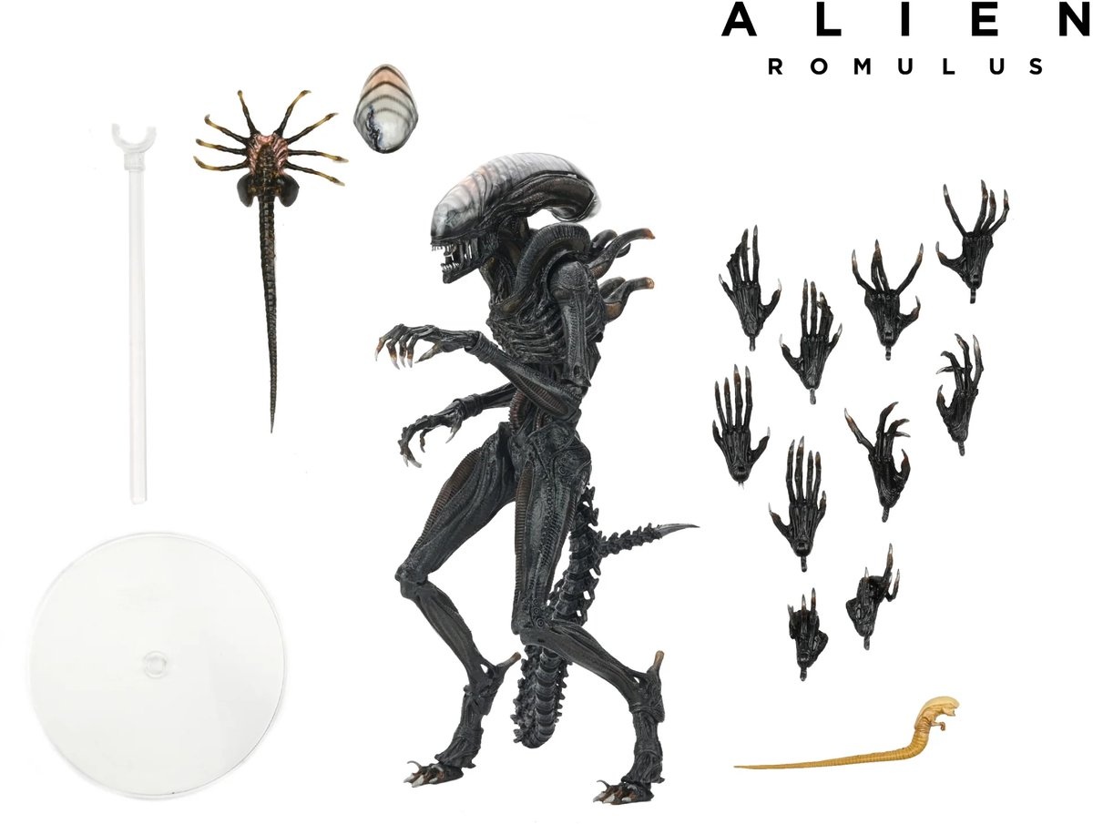 Neca Actiefiguur Alien Romulus - Scorched Xenomorph - 23cm. Ontdek de NECA Alien: Romulus – Ultimate Scorched Xenomorph (ca. 23 cm). Dit gedetailleerde verzamelfiguur heeft 23 articulatiepunten, een openende kaak met uitschuifbare inner mouth en een buigzame staart voor dynamische poses. Inclusief verwisselbare dome-onderdelen (drone-look), extra handen, facehugger, twee chestbursters en displaystandaard in window-box verpakking. Perfect voor fans van Alien en filmprops: scherm-accuraat, stevig gebouwd en klaar voor opvallende diorama’s of vitrines.