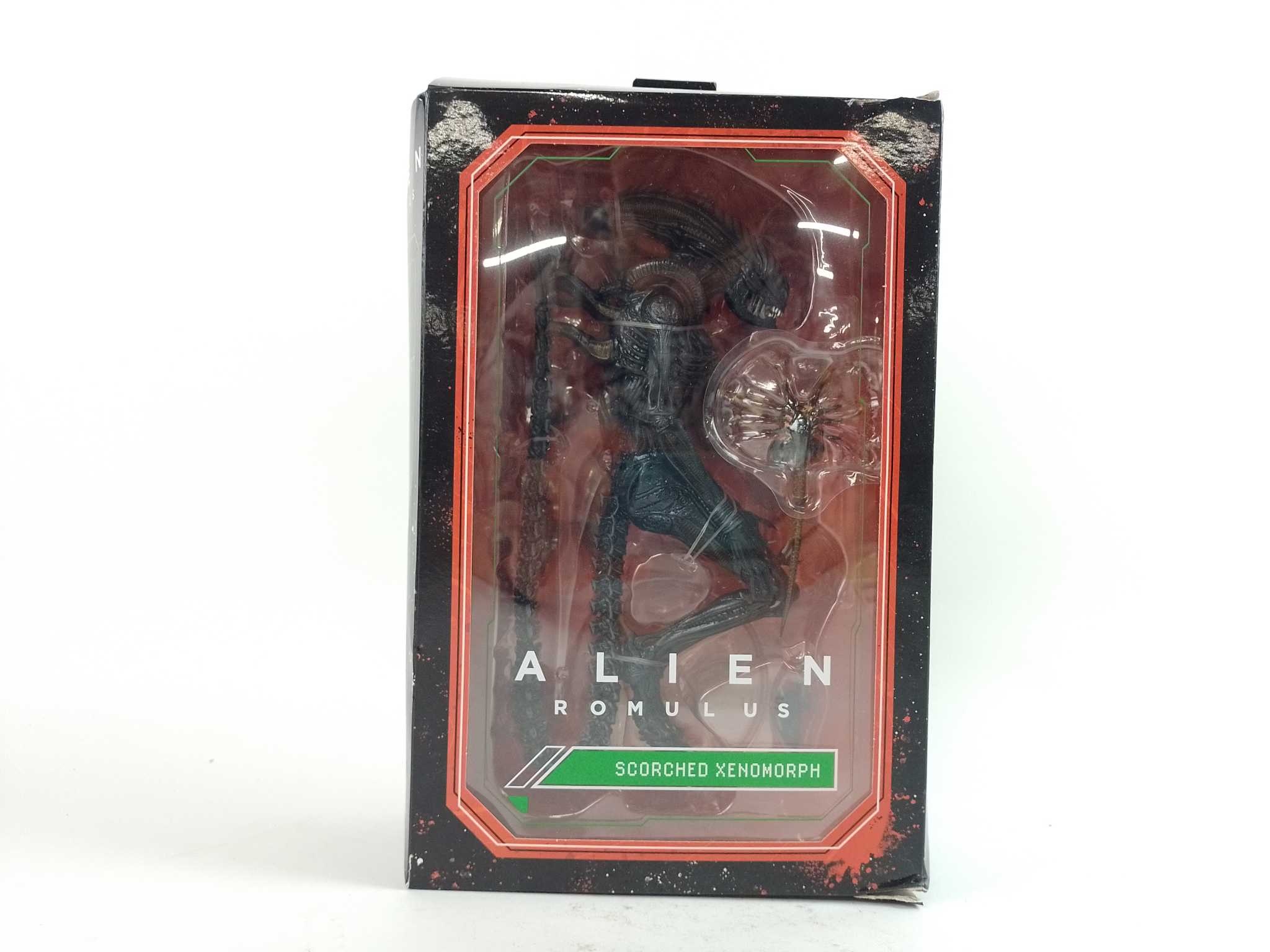 Neca Actiefiguur Alien Romulus - Scorched Xenomorph - 23cm. Ontdek de NECA Alien: Romulus – Ultimate Scorched Xenomorph (ca. 23 cm). Dit gedetailleerde verzamelfiguur heeft 23 articulatiepunten, een openende kaak met uitschuifbare inner mouth en een buigz