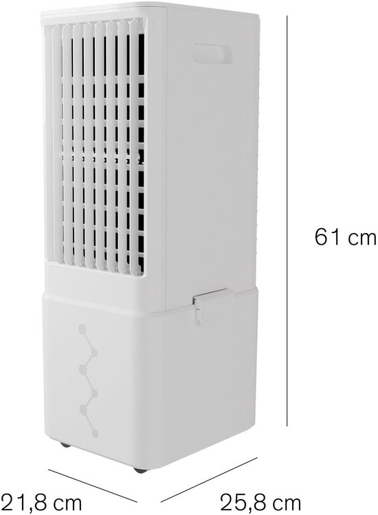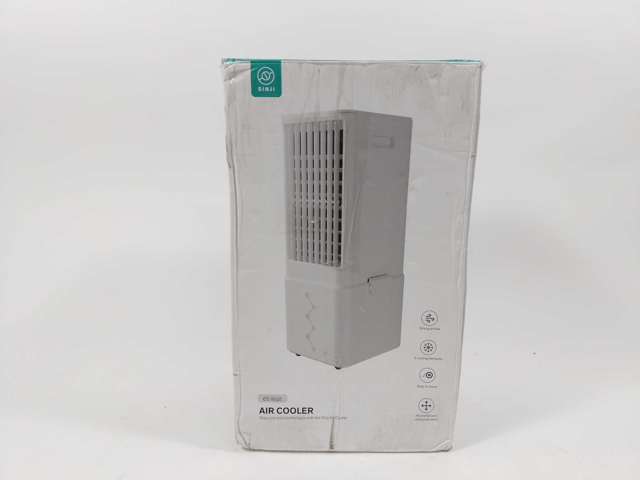 Sinji Aircooler SIAC-0109 - Wit. Blijf koel op warme dagen met de Sinji Air Cooler 65W luchtkoeler in wit. Deze mobiele aircooler koelt actief via watercirculatie én bevochtigt de lucht voor extra comfort. Het royale 11 liter waterreservoir en verbruik van circa 300 ml/uur zorgen voor lange werking. Kies uit 3 ventilatiestanden, gebruik de 60° swingfunctie en geniet van gefilterde, stofarme lucht. Bereik tot 7 meter, geluidsniveau ≤60 dB. Inclusief 2 koelelementen en handleiding. Compact torenmodel met wieltjes, 300 m³/u luchtstroom en eenvoudig bijvullen onderaan.