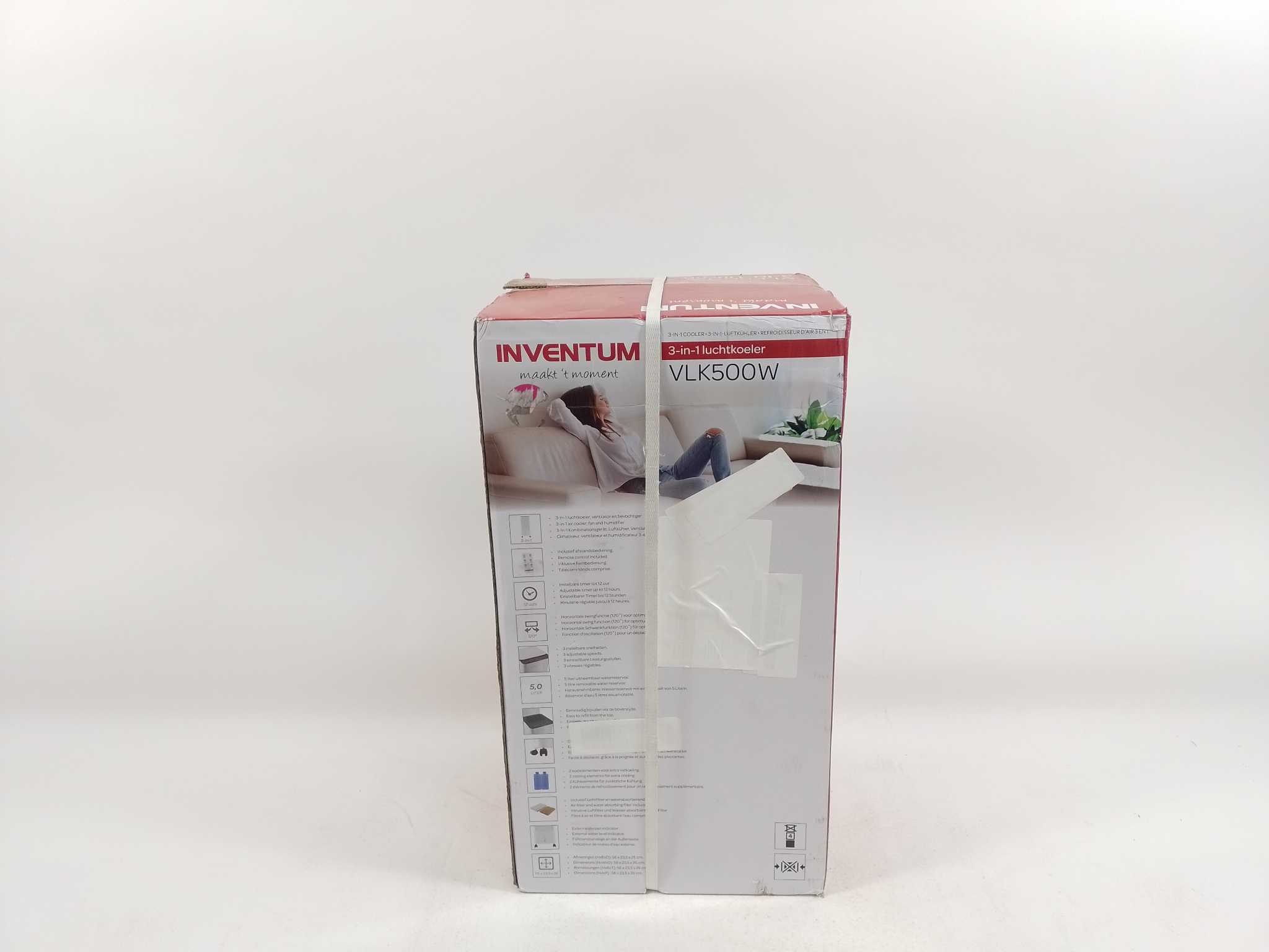 Inventum Aircooler VLK500W - 5L. Deze luxe aircooler biedt verkoeling, bevochtiging, en ventilatie met een 5L watertank en oscillerende functie voor optimale luchtverplaatsing. Met 3 snelheden, afstandsbediening, timer tot 12 uur, en verplaatsbare constructie, is hij energiezuinig en geschikt voor droge klimaten.