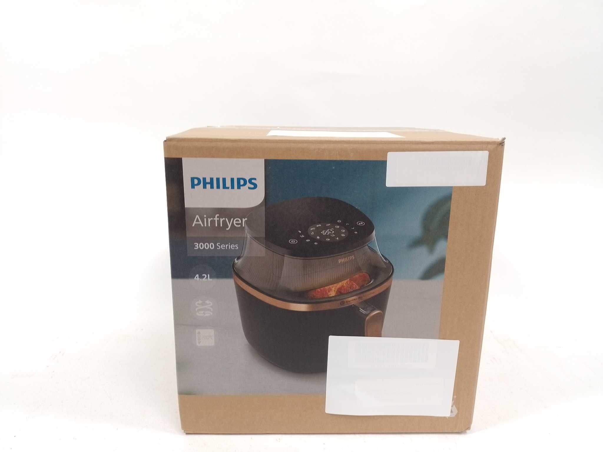 Philips Airfryer 4,2L - Zwart. De Philips Airfryer 3000 NA322/00 met kijkvenster maakt knapperige snacks en complete maaltijden met hete lucht. RapidAir Plus circuleert lucht snel voor gelijkmatige garing met minder vet. Met 4,2 liter inhoud (tot 800 g) e