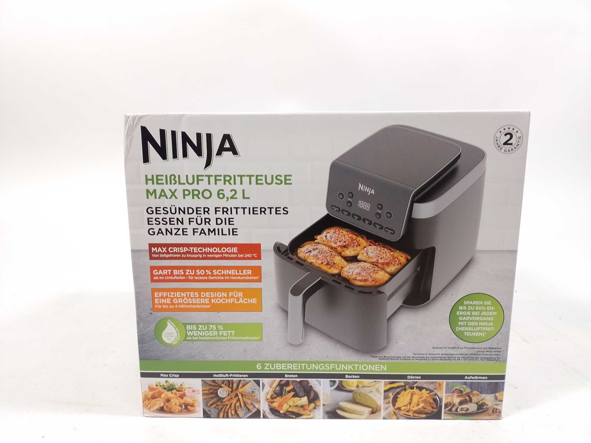 Ninja Airfryer XXL - Max Pro - AF180EU. De Ninja AF180EU Max Pro airfryer biedt een royale capaciteit van 6,2 liter en een vermogen van 2.000 W. Deze veelzijdige airfryer heeft 6 automatische functies: Max Crisp, Air Fry, Roast, Bake, Warm en Dehydrate. D