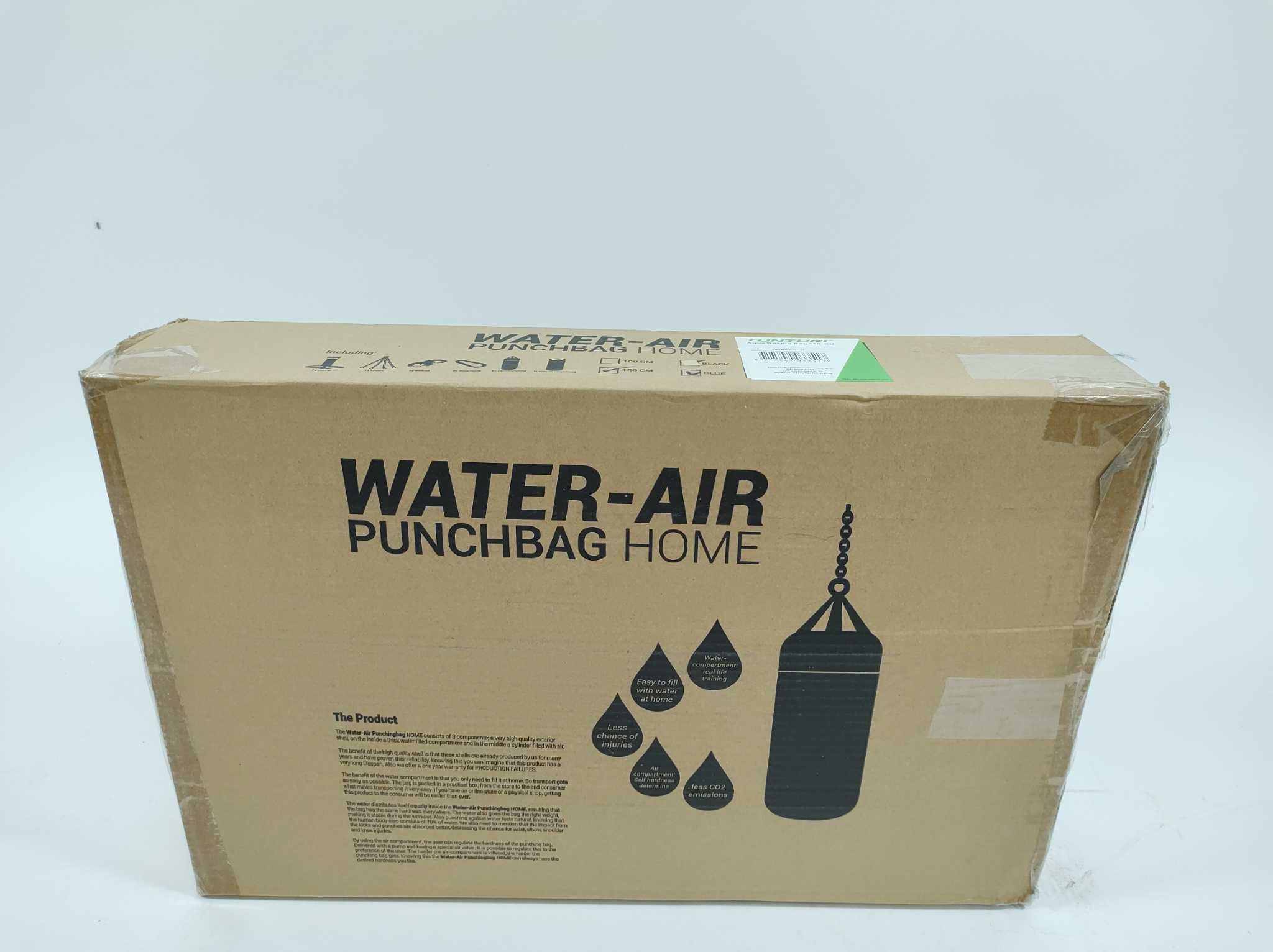 Tunturi Aqua Bokszak - 150 cm - Blauw. De Tunturi Aqua bokszak van 150 cm biedt een realistische en gewrichtsvriendelijkere training voor boksen, kickboksen en cardio. Dankzij de combinatie van water en lucht absorbeert de zak stoten uitstekend en blijft