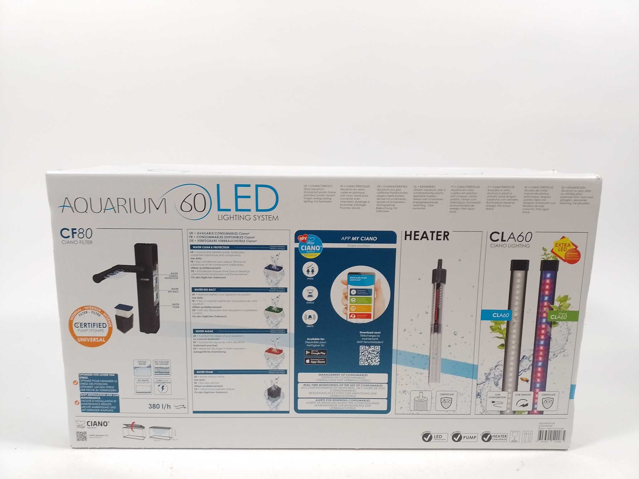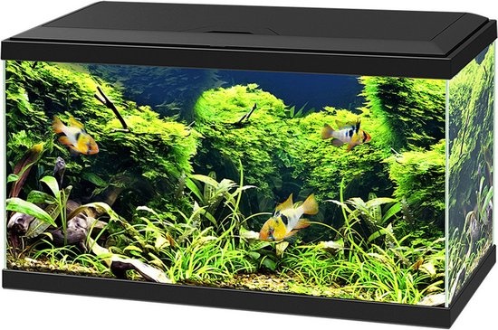 Ciano Aquarium LED 58L - 60x30x34 cm - Zwart. Start direct met een stijlvol zoetwateraquarium met de Ciano Aquarium 60 LED CF80 in zwart. De glazen bak van 58 liter (60x30x41 cm) biedt helder zicht en genoeg ruimte voor vissen en planten. Energiezuinige 8
