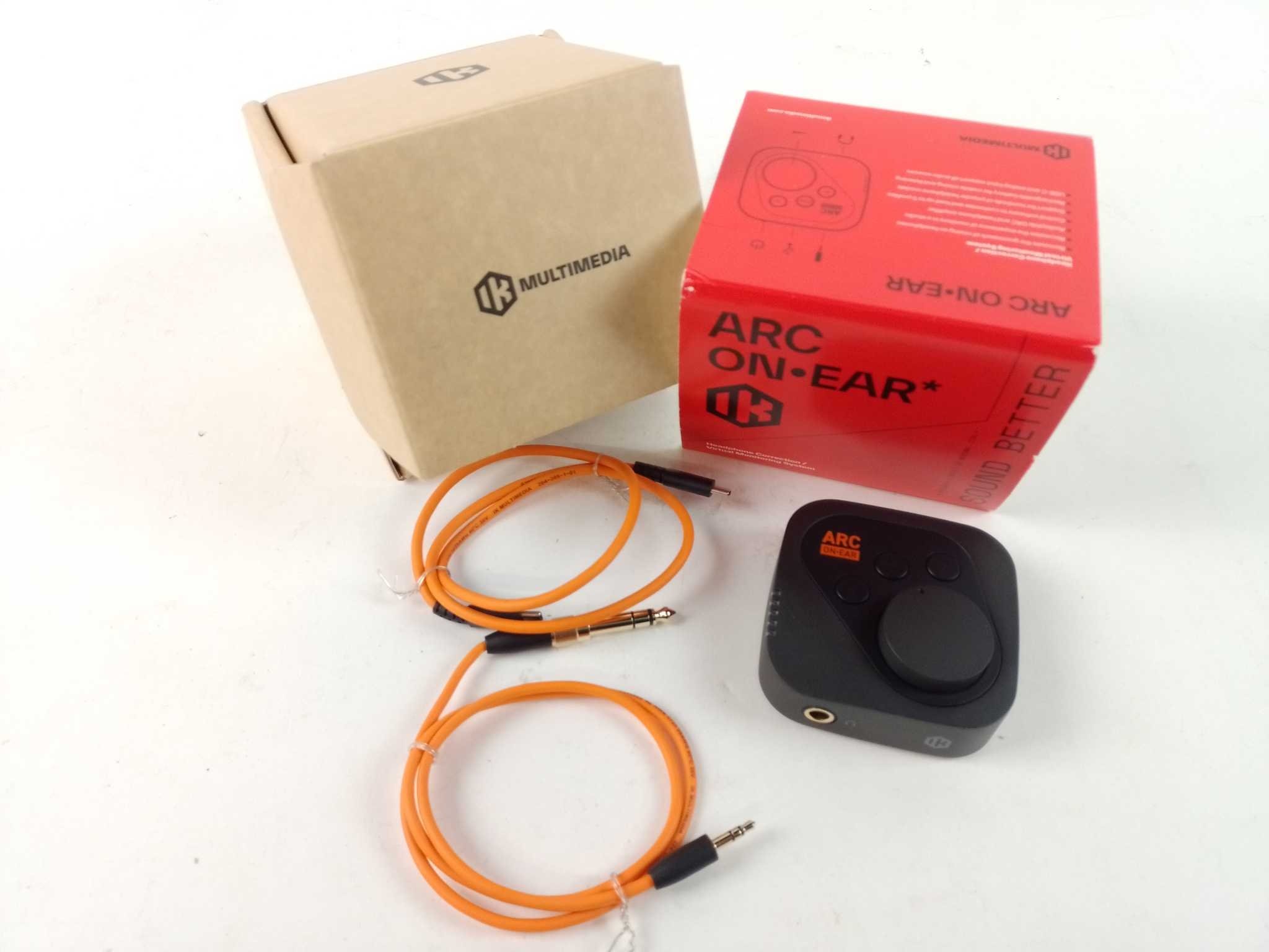 IK Multimedia ARC On-Ear. De IK Multimedia ARC On-Ear is een draagbare hoofdtelefoon-DAC en -versterker die je headphones direct kalibreert en een studioweergave simuleert, zonder plugins of DAW. Zo mix en master je onderweg met betrouwbare balans, laag e