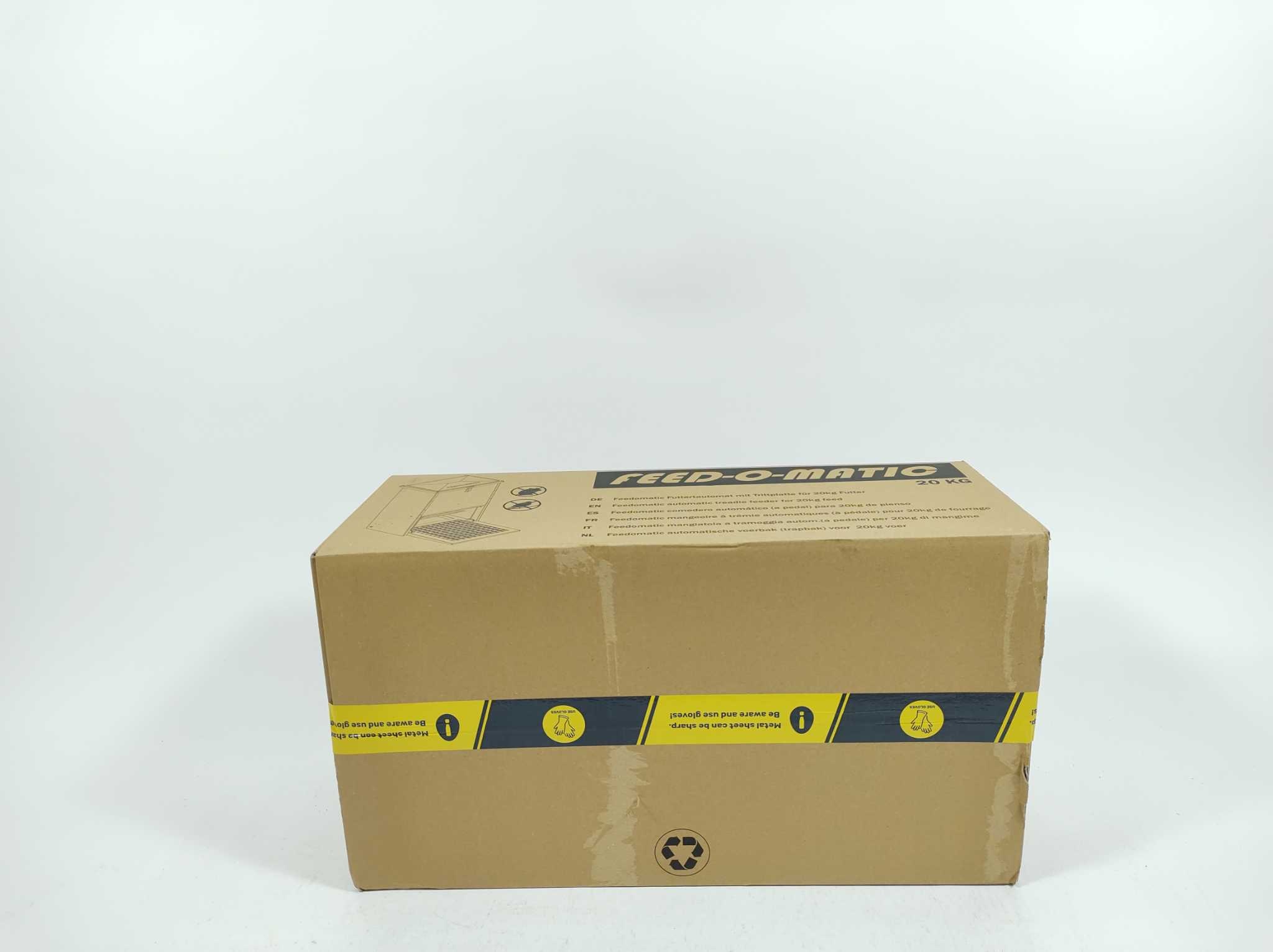 Feed-O-Matic Automatische Voederbak - 20kg. De Feedomatic automatische voerbak 20 kg houdt kippenvoer schoon en onbereikbaar voor ongedierte. De verzinkte behuizing, afsluitende deksel en kunststof voergedeelte met morsrand beperken verspilling. De trede