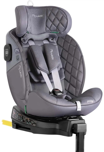 Nukido Autostoeltje Isofix - Prestige Line - Grijs. De Nukido Prestige Line autostoel is een veilige meegroei autostoel voor kinderen van 40 tot 150 cm en geschikt vanaf geboorte. Dankzij de 360 graden draaifunctie, ISOFIX bevestiging en steunpoot plaats