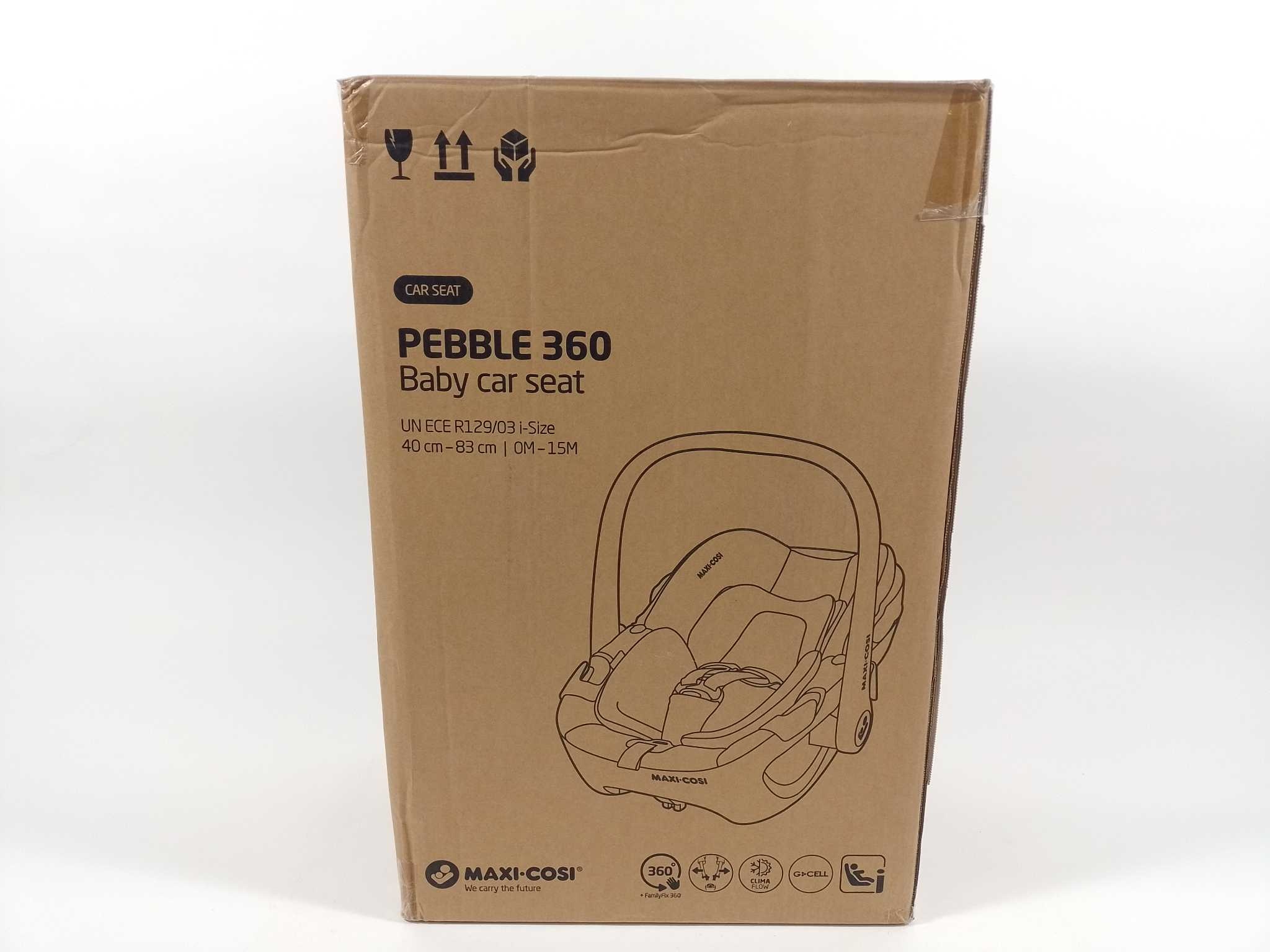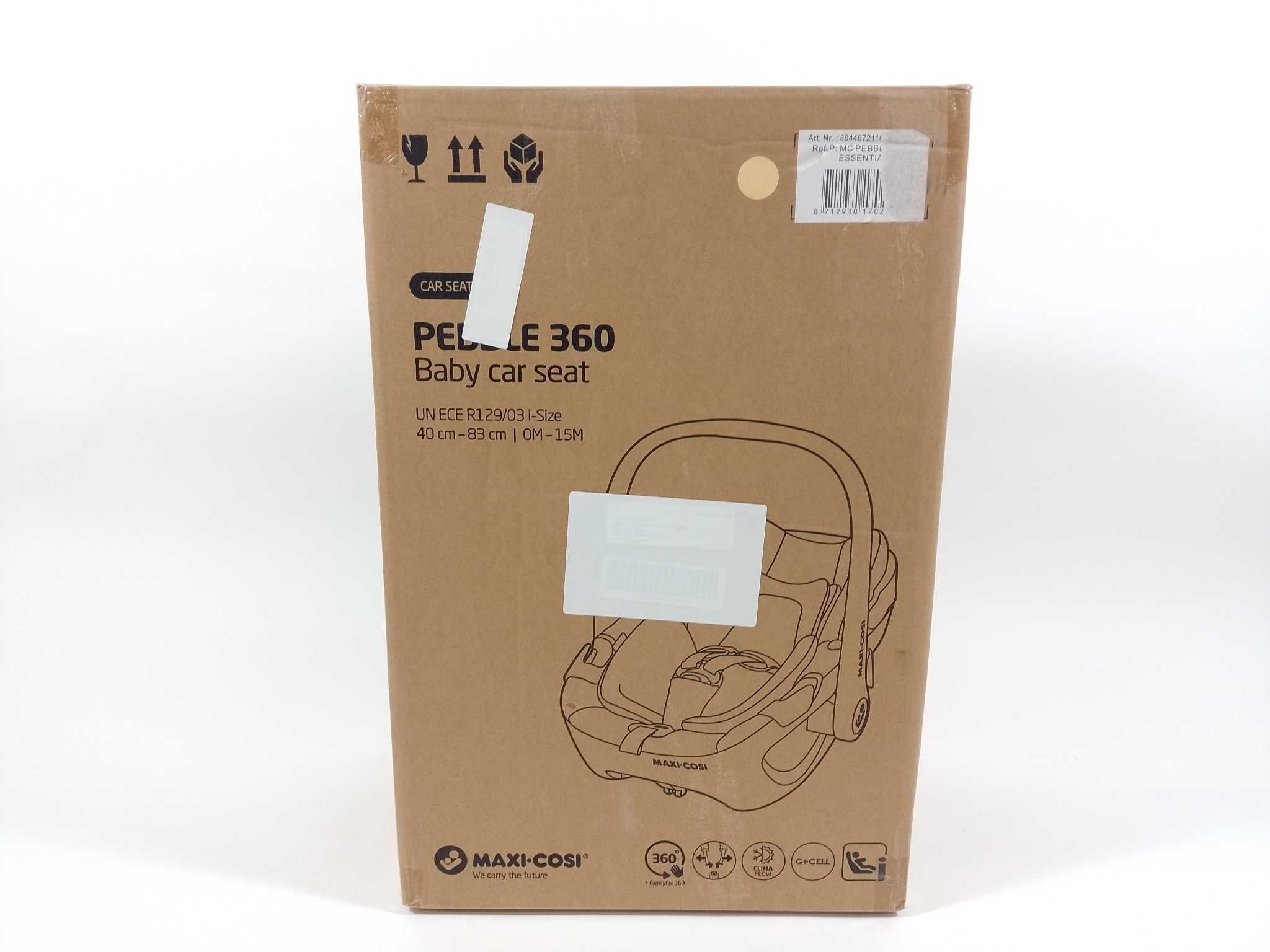 Maxi-Cosi Autostoeltje Pebble 360 i-Size - Essential Black. Maxi-Cosi Pebble 360 i-Size autostoel Essential Black biedt veilige, comfortabele ritten vanaf geboorte tot 15 maanden. Met 360° draaien op FamilyFix 360 base, Easy-in harnas en G-CELL zijbescherming plaats je je baby snel en beschermd. ClimaFlow reguleert temperatuur; verstelbare hoofdsteun groeit mee. Voldoet aan i-Size (40–83 cm, 0–13 kg). Inclusief Baby-Hugg zitverkleiner en extra grote zonnekap. Compatibel met kinderwagens en ISOFIX base. Ideaal baby autostoeltje voor dagelijks gebruik, snel instappen en hoogwaardige bescherming. Licht, ergonomisch handvat, machinewasbare bekleding met UV-bescherming.