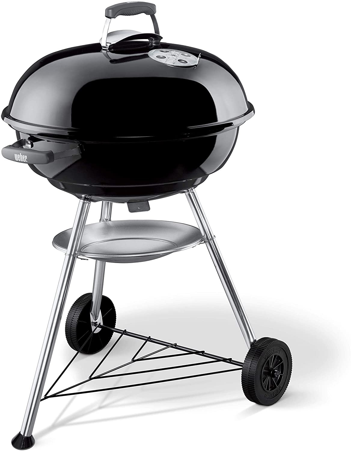 Weber Barbecue Compact Kettle - 57cm. De Weber Compact Kettle Houtskoolbarbecue biedt een ideale balans tussen prestaties en draagbaarheid. Het compacte ontwerp maakt hem perfect voor kleine tuinen of balkons. Met de betrouwbare luchtregeling en de geëmailleerde deksel geniet je van optimale temperatuurbeheersing en gelijkmatige verwarming. Duurzaam en eenvoudig te reinigen, deze barbecue is een must voor elke grillliefhebber. Diepte: 57 cm. Breedte: 57 cm. Hoogte: 98 cm. Diameter: 57 cm. Kleur: Zwart. Materiaal: Metaal. Afwerking: Glanzend.