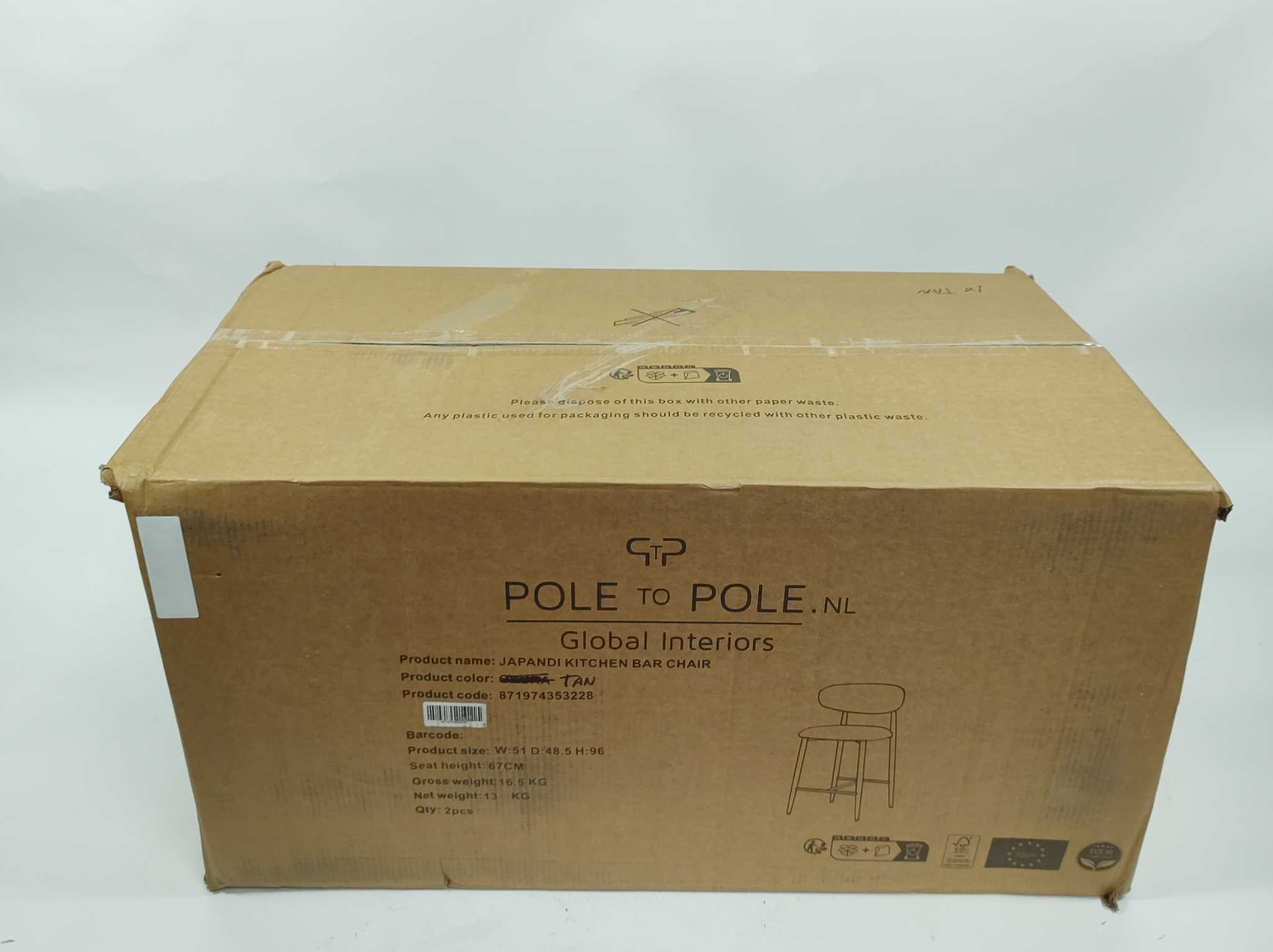 Pole to Pole Barkruk Japandi Okura - Set van 2. De Pole to Pole Japandi barkruk Okura combineert Japanse eenvoud met Scandinavische warmte in een stijlvol ontwerp voor keuken, kookeiland of bartafel. Het metalen frame met houtlook geeft een natuurlijke uitstraling, terwijl de zacht gebogen rugleuning en comfortabele zitting zorgen voor prettig zitcomfort. Met een zithoogte van 67 cm past deze barkruk perfect aan hogere tafels. De strakke lijnen en rustige vormgeving maken hem ideaal voor moderne, minimalistische en sfeervolle interieurs met karakter, balans en comfort bij dagelijks gebruik.