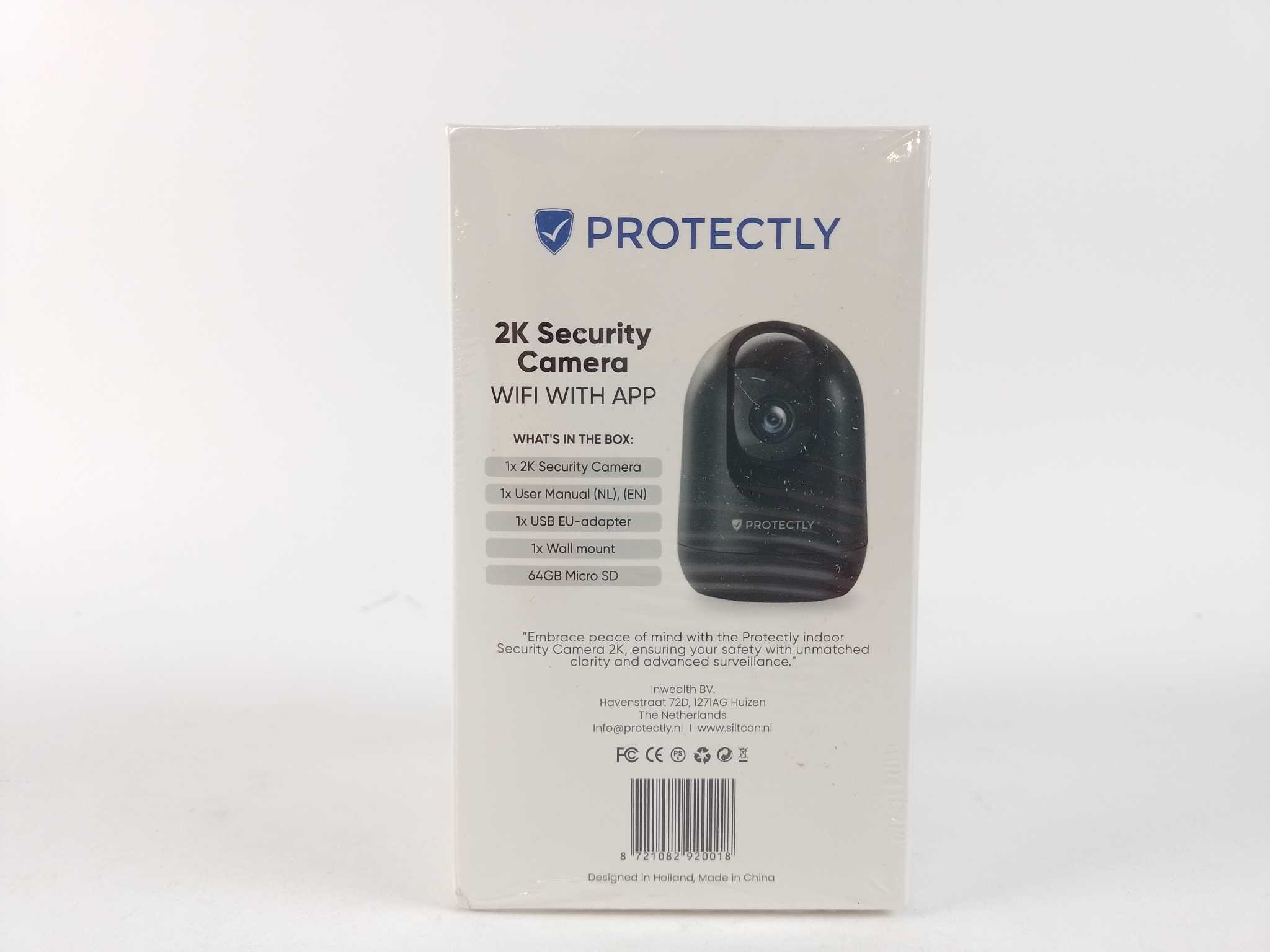Protectly Beveiligingscamera 2K - 3MP - Zwart. De Protectly 2K Ultra HD beveiligingscamera bewaakt je huis en huisdieren haarscherp. Met WiFi, pan/tilt, nachtzicht en slimme beweging- en geluidsdetectie ontvang je direct meldingen in de app. Tweerichtingsaudio laat je praten en luisteren, ideaal als petcam of babykamer camera. Privacyzones en tijdschema’s geven controle. Lokale opslag via microSD en versleutelde verbinding voor gemoedsrust. Eenvoudige installatie, ook aan plafond of muur. Inclusief netadapter, USB-kabel, montagebeugel, schroeven en handleiding. Compact, stil en energiezuinig – altijd toezicht, overal, met heldere 2K-opnames. dagelijks.