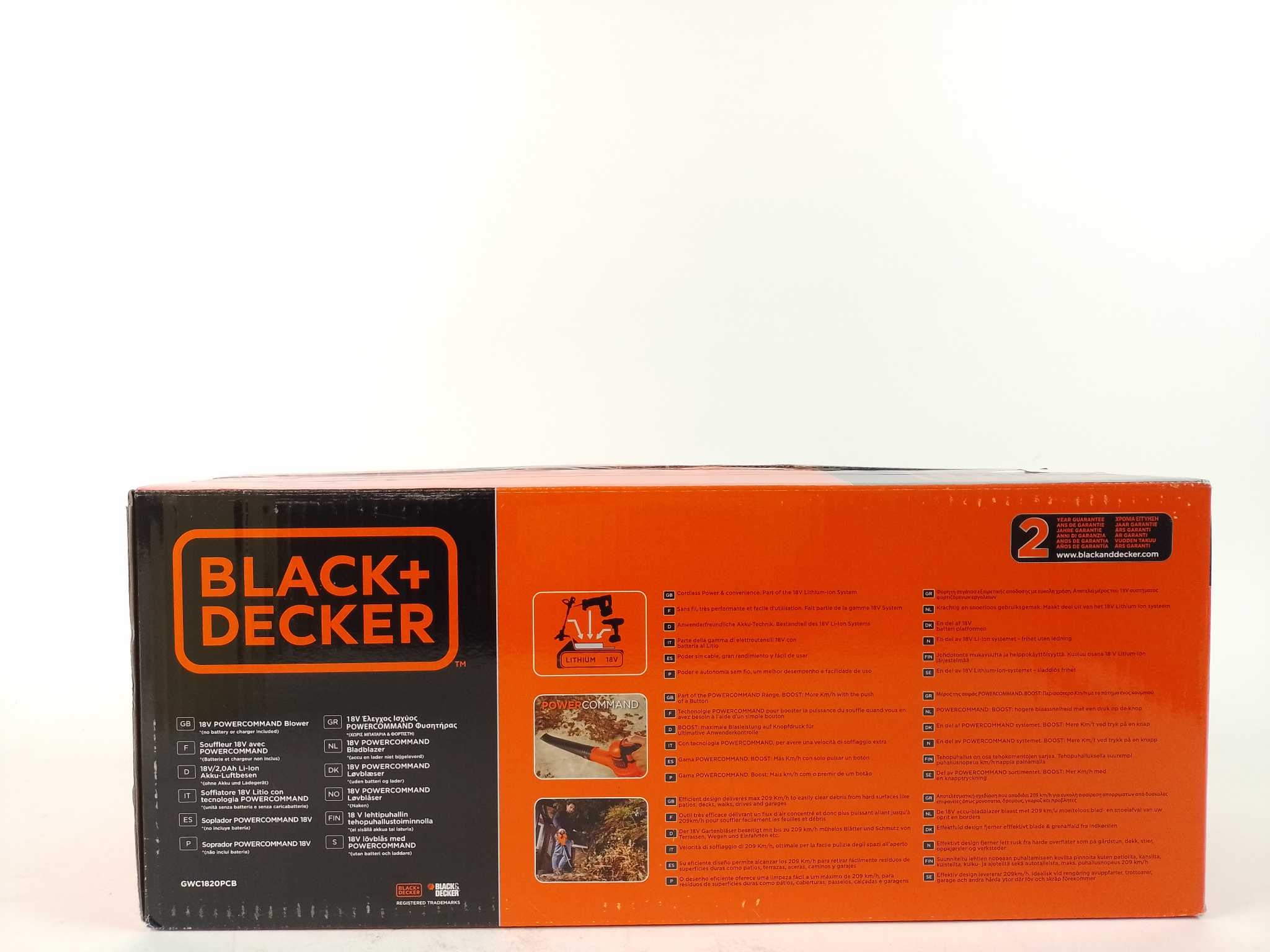 Black+Decker Bladblazer GWC1820PCB - Body. Ruim bladeren en tuinafval razendsnel op met de Black+Decker 18V snoerloze accu bladblazer GWC1820PCB-XJ. Met blaassnelheid tot 209 km/u veeg je oprit, terras en garage schoon. Druk op POWERCOMMAND BOOST voor ext