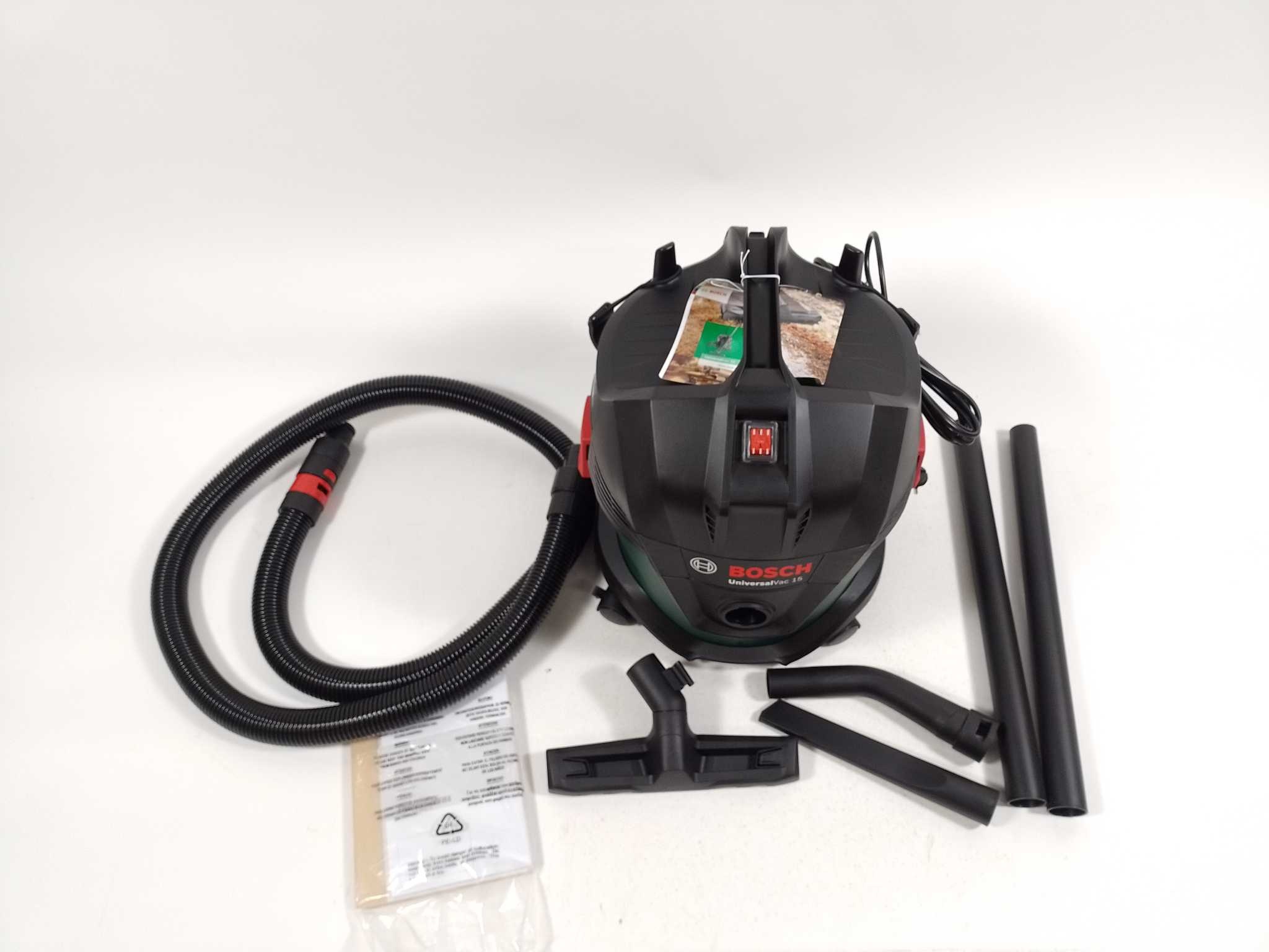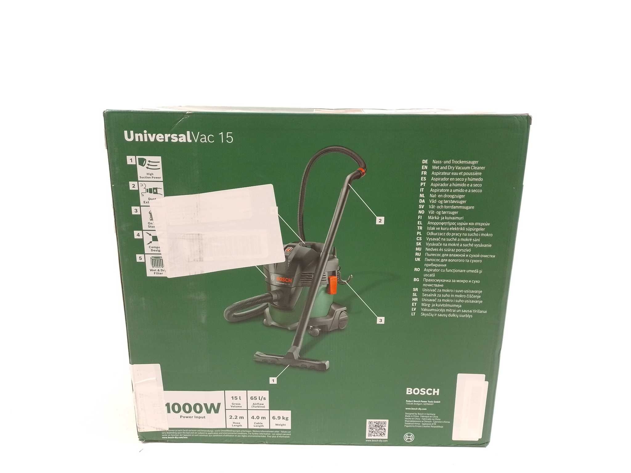 Bosch Bouwstofzuiger UniversalVac 15. De Bosch UniversalVac 15 is een krachtige bouwstofzuiger voor nat- en droogzuigen. Met sterke zuigkracht, een grote 15L tank en veelzijdige accessoires is hij ideaal voor werkplaatsen en huishoudelijk gebruik. Dankzij