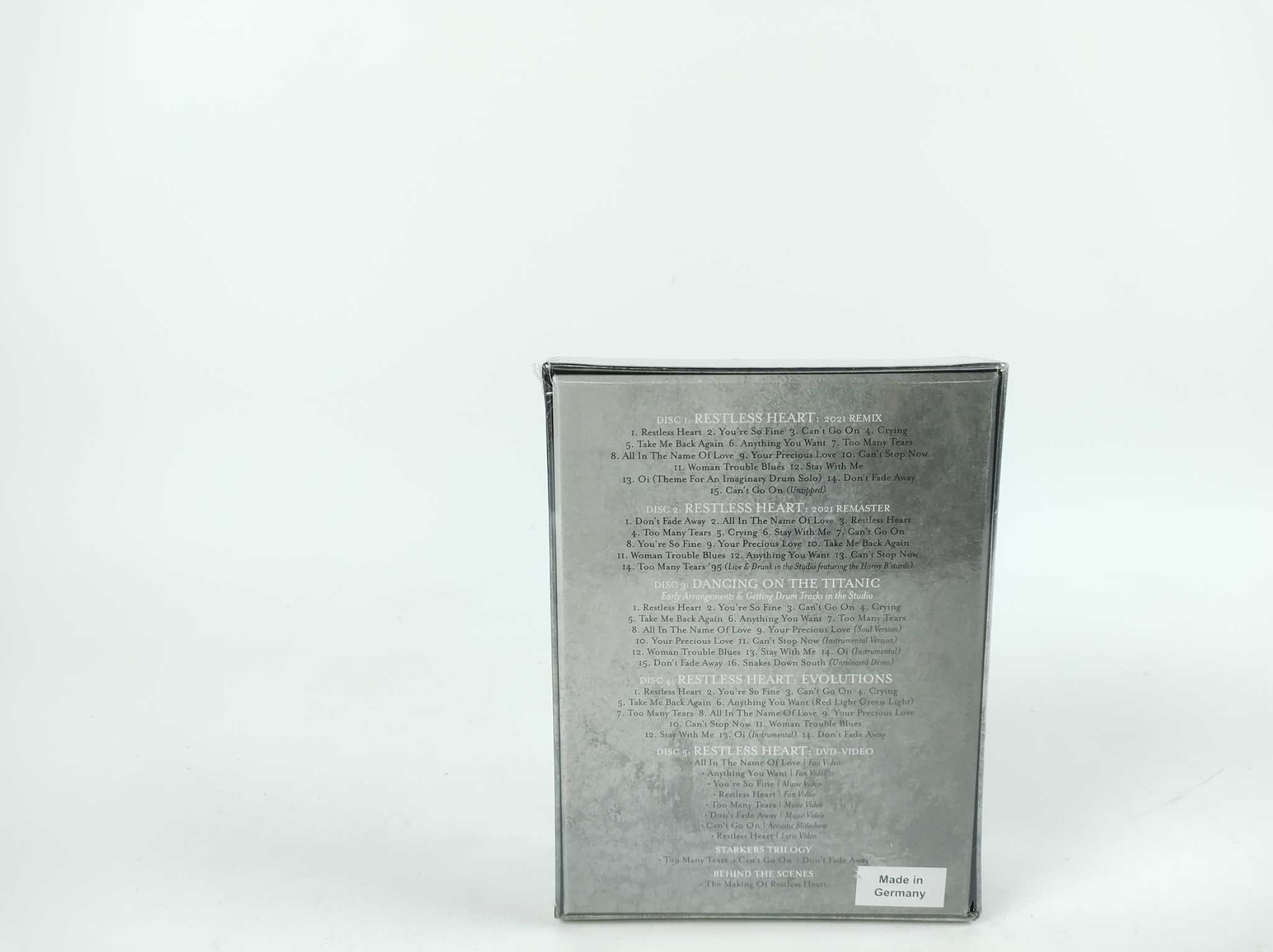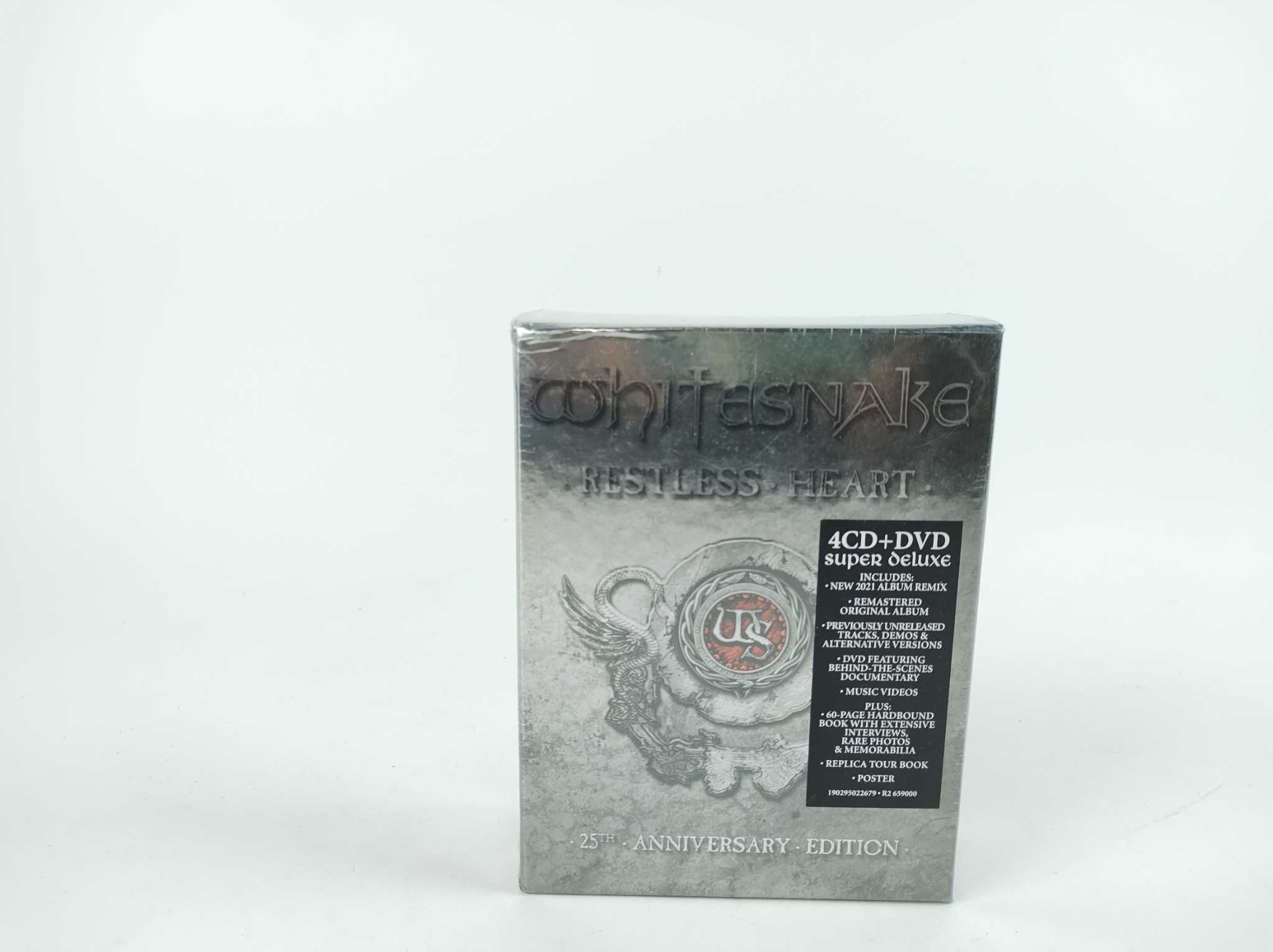 Whitesnake Box Set - Restless Heart. Vier 25 jaar Whitesnake’s ‘Restless Heart’ met de Super Deluxe box: 4CD + DVD vol nieuwe remix en remaster, zeldzame demo’s, outtakes en evoluties van de songs. De DVD bevat videoclips, making-of en Starkers-in-Tokyo-f