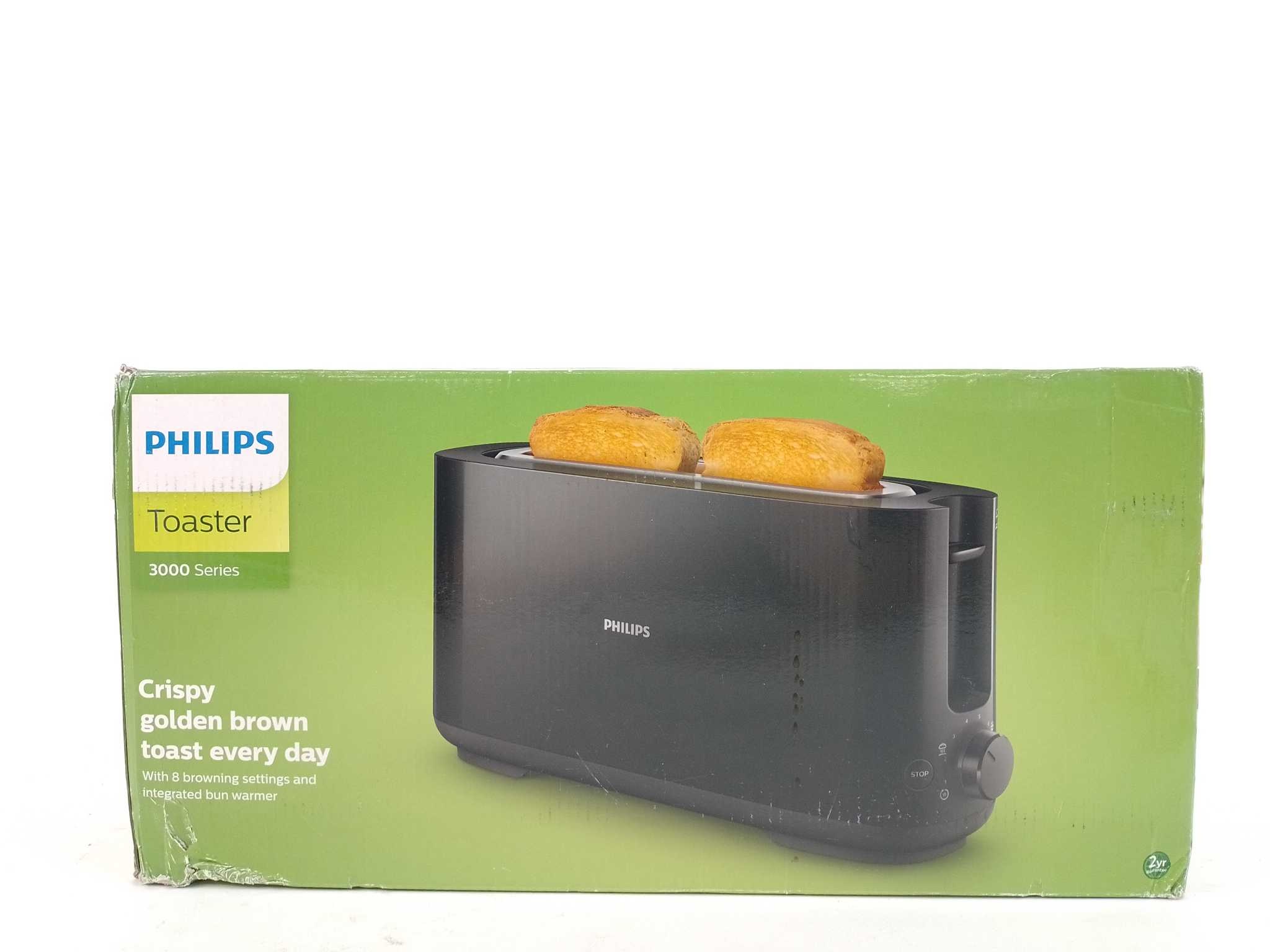 Philips Broodrooster Daily HD2590/90. Start elke ochtend met perfect geroosterde toast met de Philips HD2590/90 broodrooster. De extra lange sleuf roostert verschillende broodsoorten en dikke sneden gelijkmatig. Kies uit 8 bruiningsstanden en gebruik ontd