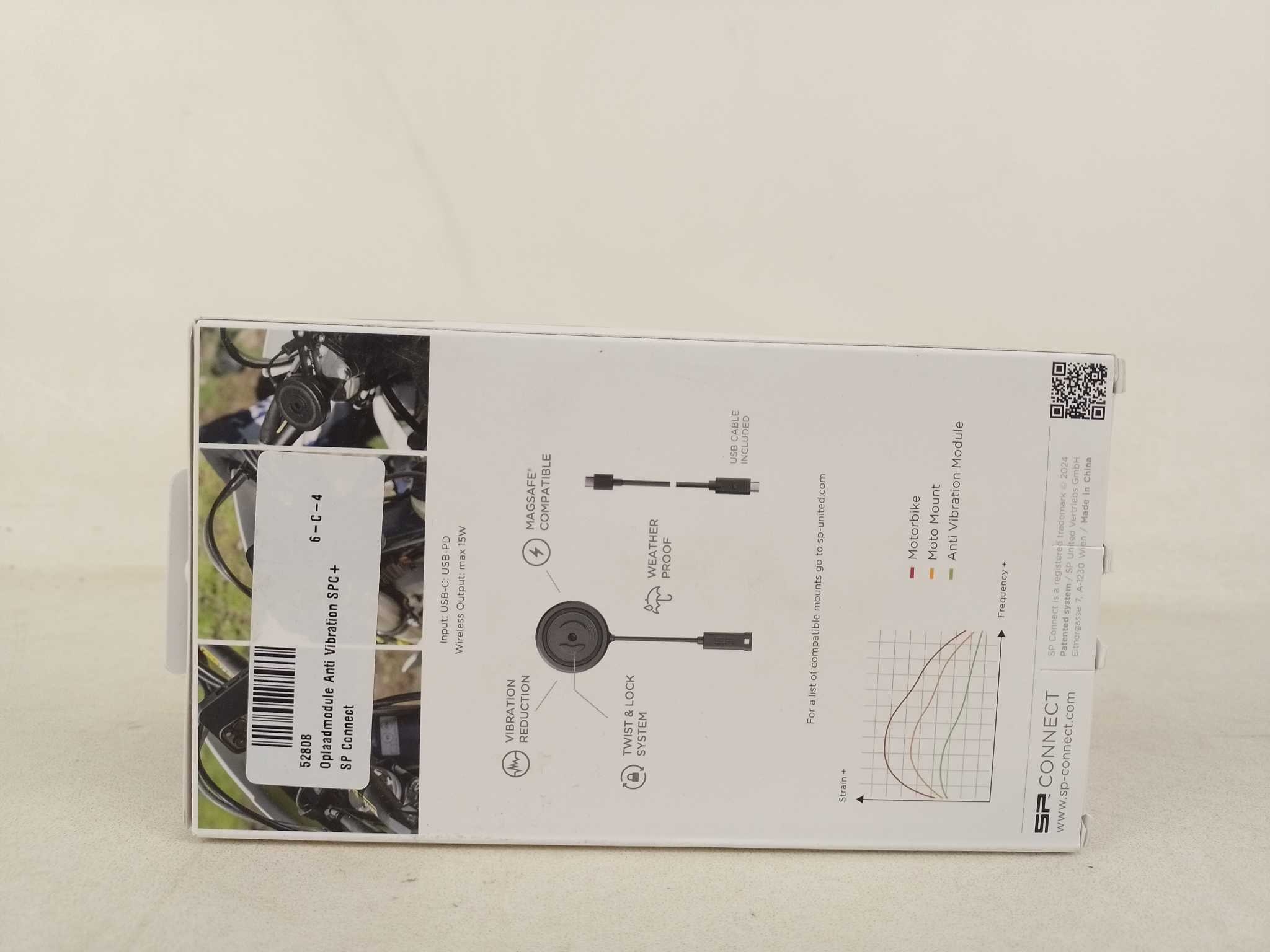 SP Connect Charging Anti Vibration Module SPC+. Bescherm je smartphone op de motor met de SP Connect Charging Anti Vibration Module SPC+. De CNC-gefreesde aluminium trillingsdemper met elastomeer-inlay reduceert vibraties tot 60% en laadt je telefoon draa