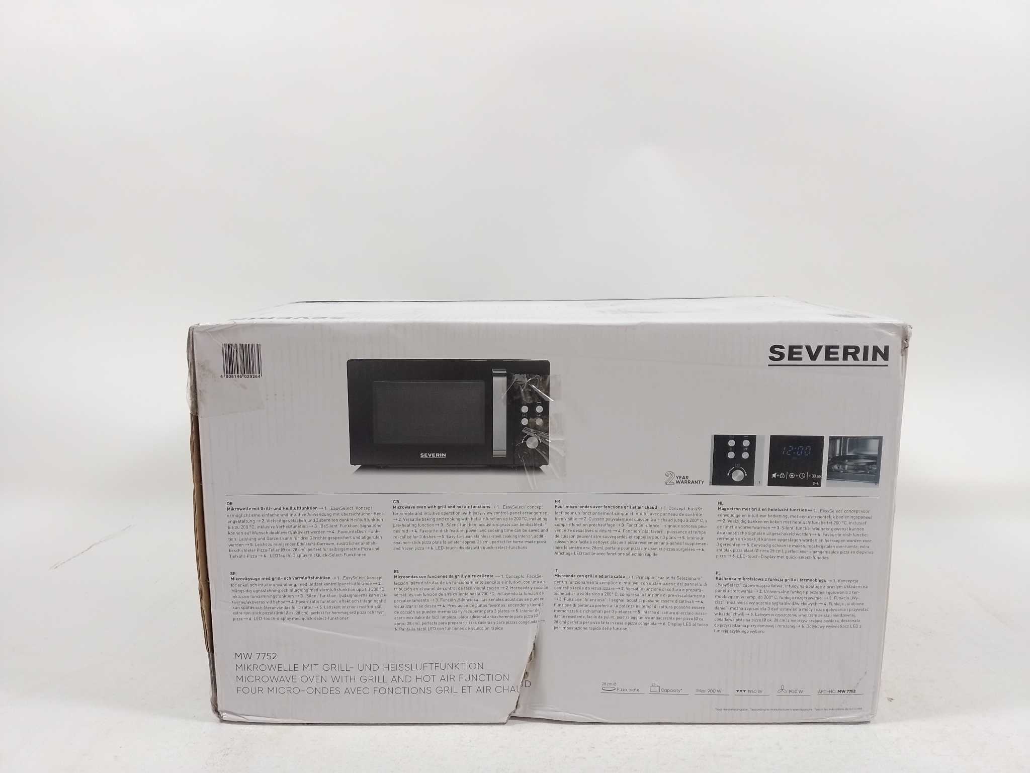 Severin Combimagnetron MW 7752 - Zwart. De Severin MW 7752 combi-magnetron (zwart) biedt veelzijdig koken met magnetron-, grill- en heteluchtfunctie. Met een capaciteit van 25 liter en 900 watt vermogen is hij ideaal voor snel en efficiënt koken. Het moderne design en de intuïtieve bediening maken deze magnetron perfect voor elke keuken. Magnetronvermogen: 900 W. Ovenvermogen: 1950 W. Grillvermogen: 1950. Aantal vermogensstanden: 10. Alleen bovenwarmte mogelijk: Ja. Maximale temperatuur: 200 °C. Bediening: Draaisysteem. Kleur: MW7752. Alleen onderwarmte mogelijk: Ja. Gewicht: 18.50 kg. Product breedte: 49 cm. Volume in liters: 23 l. Inhoud: Medium: 20 tot 25 liter.