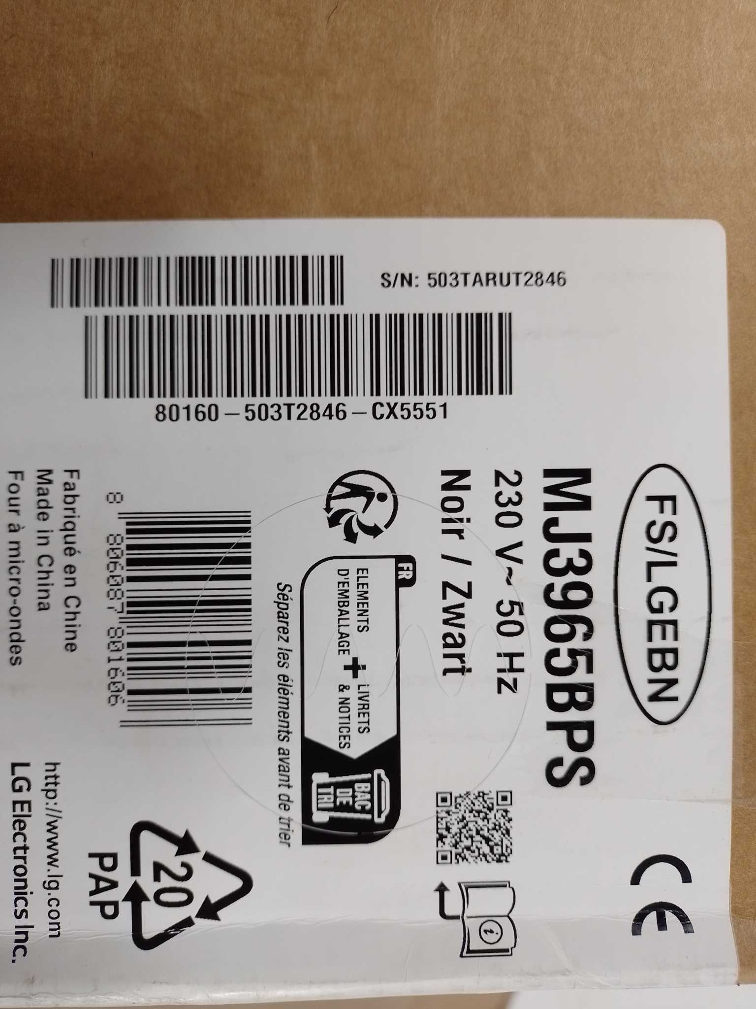 LG Combimagnetron Vrijstaand - MJ3965BPS_BK - Zwart. De LG MJ3965BPS is een veelzijdige combi-magnetron met een ruime inhoud van 39 liter, ideaal voor gezinnen. Dankzij de Smart Inverter-technologie worden gerechten gelijkmatig verwarmd en behouden ze hun smaak. De magnetron beschikt over een grillfunctie van 950W en een heteluchtfunctie van 1850W, perfect voor krokante en sappige maaltijden. Met de meegeleverde crispschaal bereid je eenvoudig knapperige gerechten. De EasyClean™-coating maakt schoonmaken moeiteloos. Afmetingen: 54,4 x 32,7 x 52,5 cm (B x H x D). Een stijlvolle en functionele toevoeging aan elke keuken.