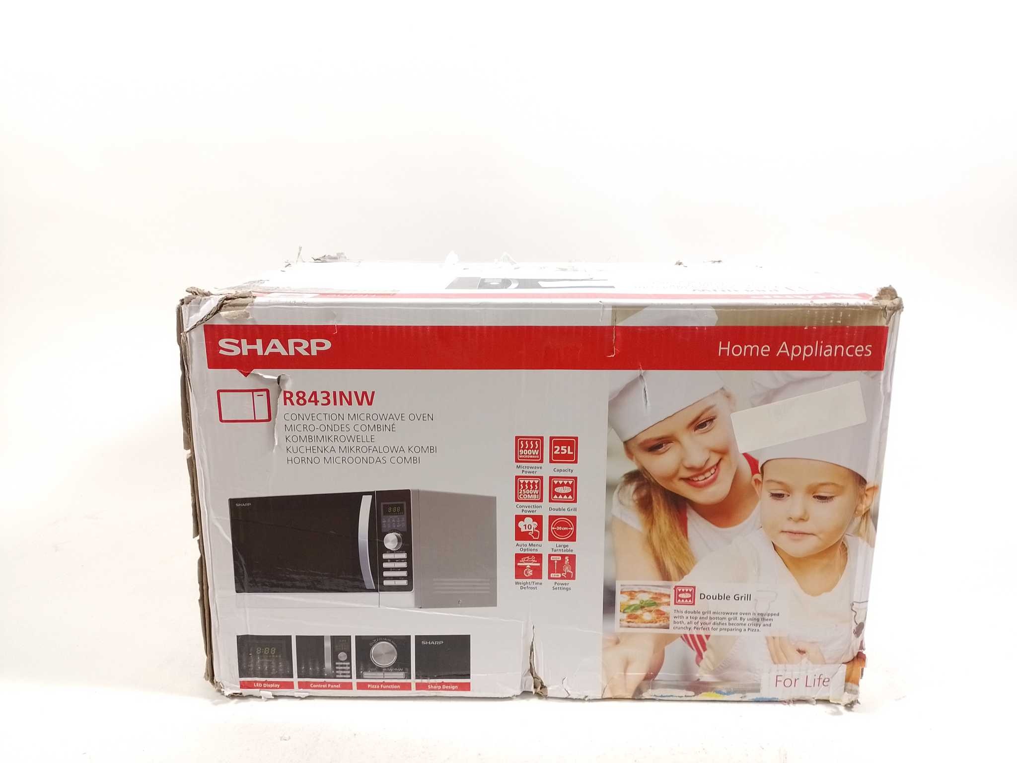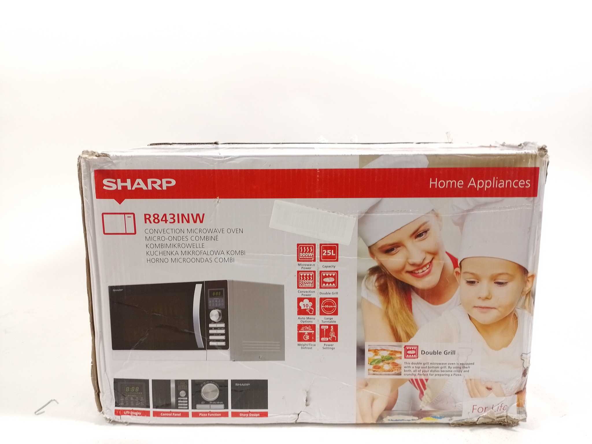Sharp Combimagnetron Vrijstaand R843INW. De Sharp R843INW is een 3-in-1 combimagnetron met hetelucht, dubbele grill en magnetron. Met 25 liter inhoud, 900 W magnetronvermogen, 1100 W grill en 2500 W hetelucht bak, grill en ontdooi je snel en gelijkmatig.