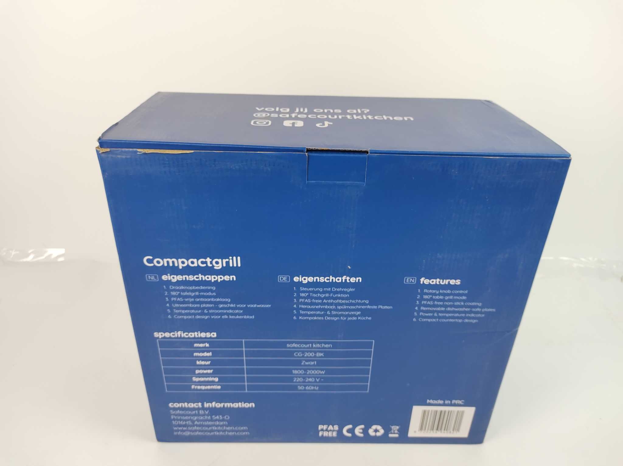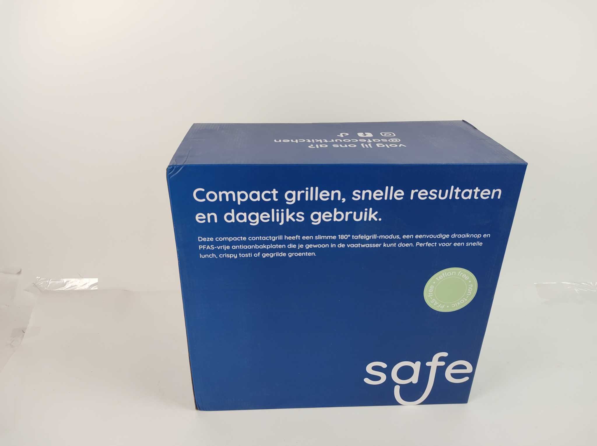 Safecourt Kitchen Contactgrill CG200-BK. De Safecourt Kitchen contactgrill is een veelzijdig tosti apparaat en paninigrill voor snelle, smaakvolle maaltijden in elke keuken. Dankzij de 3-in-1 functie gebruik je hem als tosti-ijzer, contactgrill of volledig opengeklapt als grillplaat. De uitneembare grillplaten zijn PFAS-vrij en vaatwasserbestendig, wat schoonmaken extra eenvoudig maakt. Met het grote grilloppervlak en het snelle opwarmen bereid je moeiteloos meerdere tosti’s, panini’s of burgers tegelijk. Ideaal voor dagelijks gebruik en gezellige eetmomenten met familie of vrienden aan tafel, van ontbijt tot avondeten thuis.