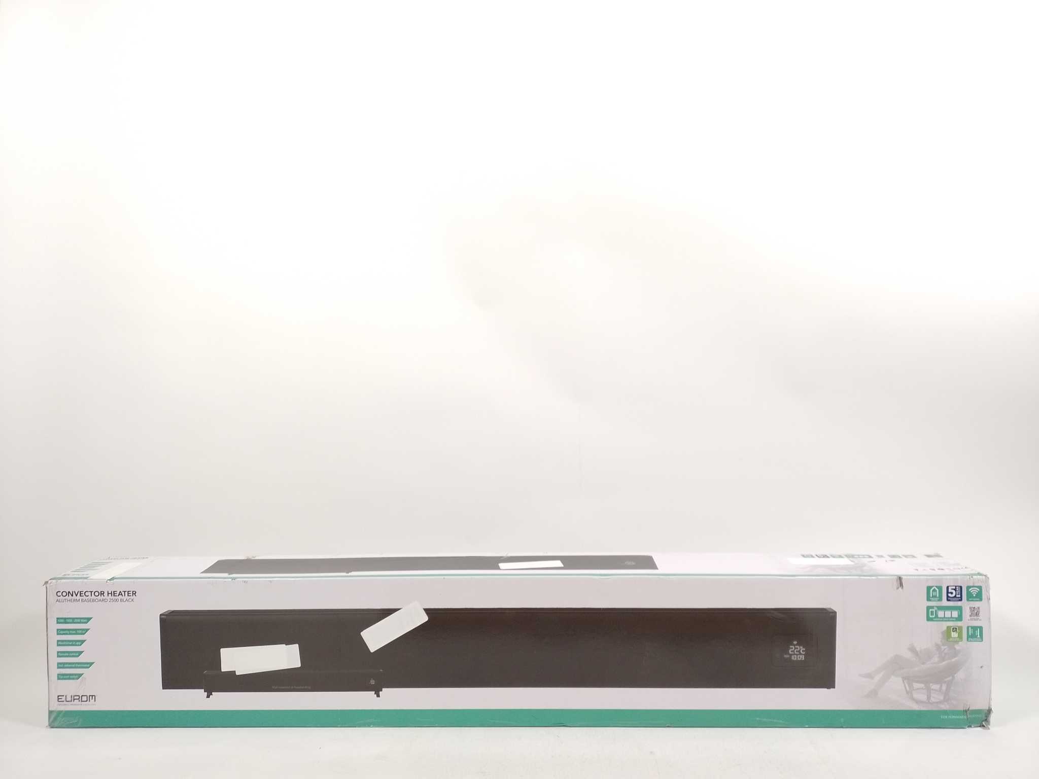 Eurom Convectorkachel Alutherm Baseboard 2500W - Zwart. De Eurom Alutherm Baseboard 2500 Wi-Fi is een lage convectorkachel voor onder ramen en langs wanden. Met 2500 W, drie standen en instelbare thermostaat verwarmt hij ruimtes tot ca. 100 m³ comfortabel