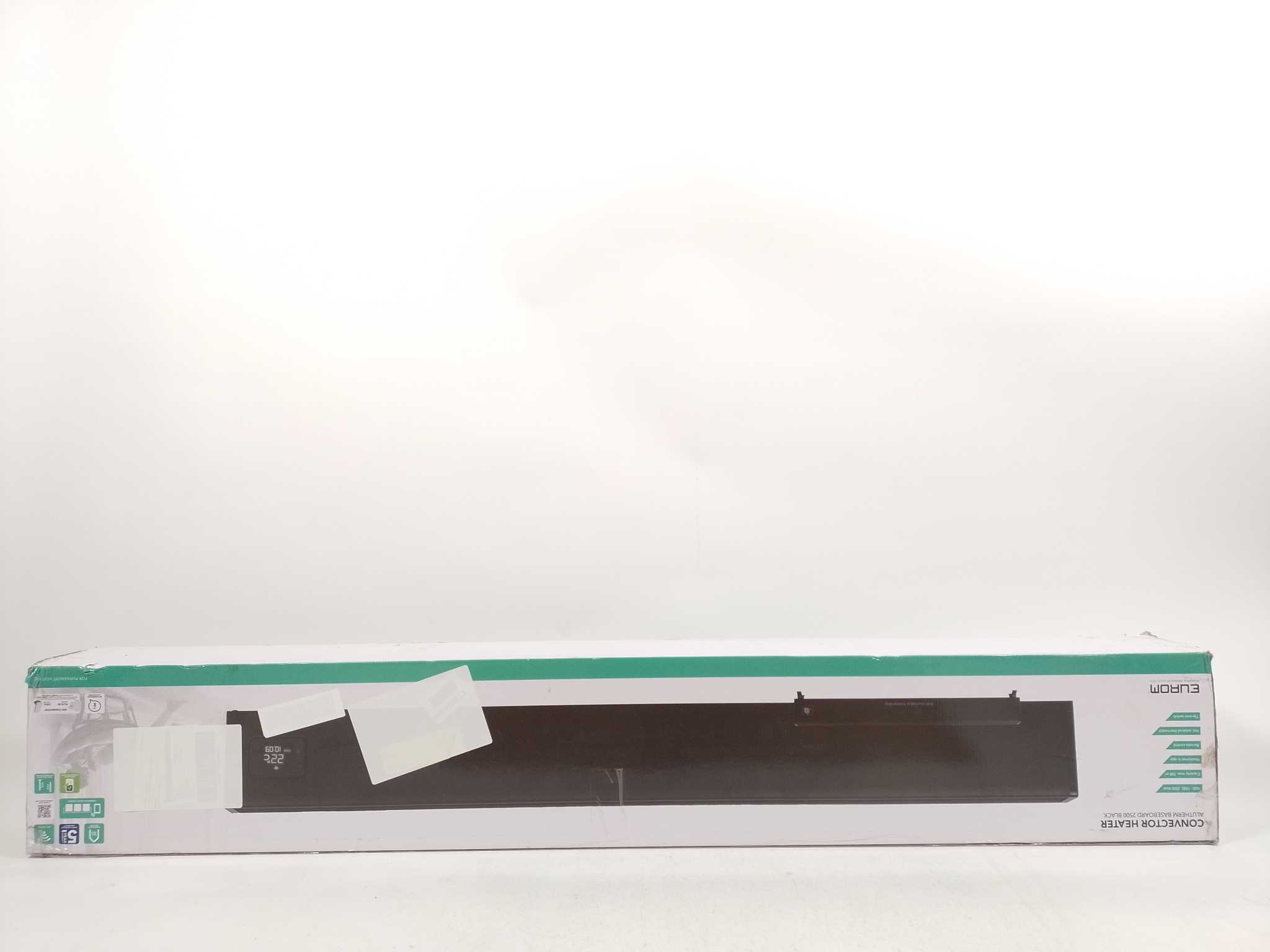 Eurom Convectorkachel Alutherm Baseboard 2500W - Zwart. De Eurom Alutherm Baseboard 2500 Wi-Fi is een lage convectorkachel voor onder ramen en langs wanden. Met 2500 W, drie standen en instelbare thermostaat verwarmt hij ruimtes tot ca. 100 m³ comfortabel en stil. Bedien via app of meegeleverde afstandsbediening; weektimer en display maken plannen eenvoudig. Plaatsing vrijstaand of aan de muur. Oververhittings- en omvalbeveiliging verhogen de veiligheid. Meegeleverd: afstandsbediening en montagemateriaal. Slank zwart design (145 cm) past subtiel in woonkamer, slaapkamer, kantoor, studio of hobbyruimte.