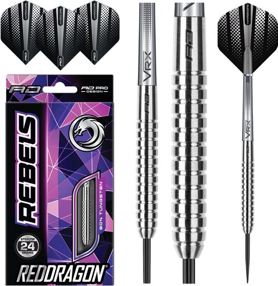 Red Dragon Dartpijlen Rebel V2 - 90% Tungsten - 24g. Red Dragon Rebel steeltip dartpijlen van 24 gram zijn ontworpen voor darters die precisie, grip en constante controle zoeken. De slanke barrels van 90% tungsten bieden een stabiele, gebalanceerde worp e