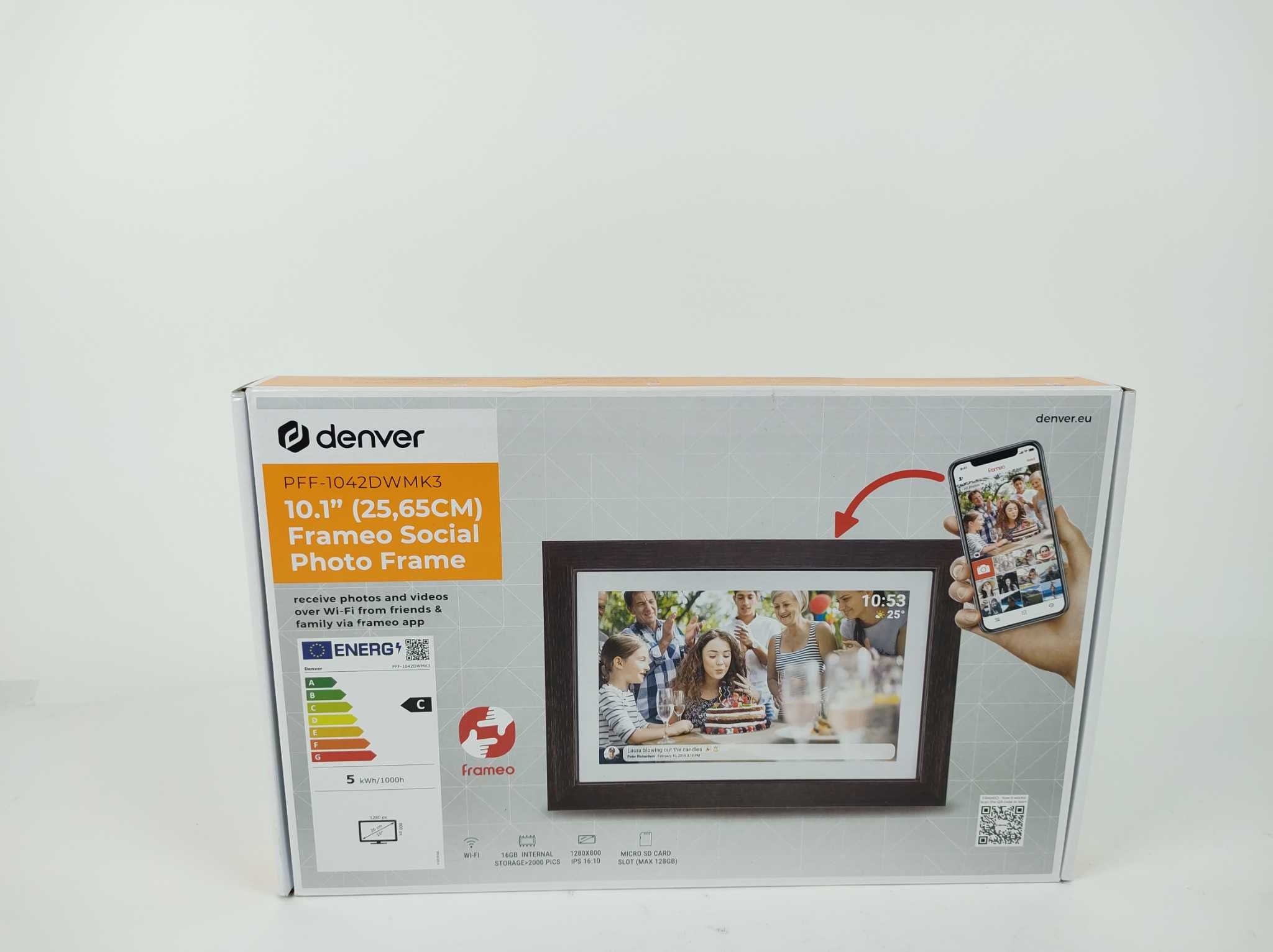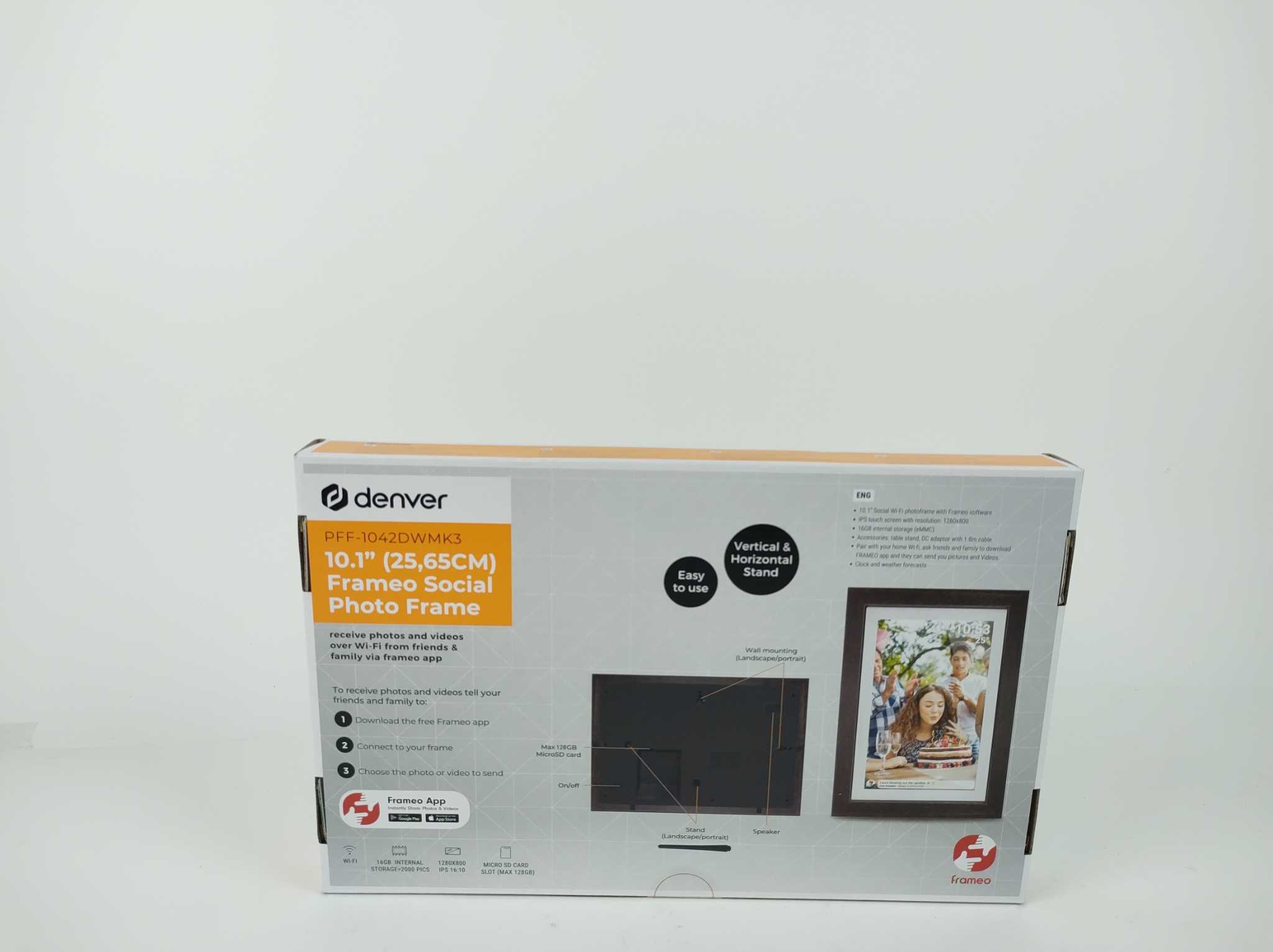 Denver Digitale Fotolijst - 10,1 Inch - Hout. De Denver PFF-1042 Darkwood digitale fotolijst (10,1″) combineert elegant houtdesign met moderne technologie. Met een IPS touchscreen, Wi-Fi-connectiviteit en 16 GB opslag kun je moeiteloos foto’s en video’s delen via de Frameo-app. De lijst ondersteunt automatische slideshow-instellingen en beschikt over een microSD-sleuf. Dankzij de timerfunctie schakelt hij zichzelf uit wanneer je slaapt. Een stijlvolle en slimme manier om herinneringen tot leven te brengen.