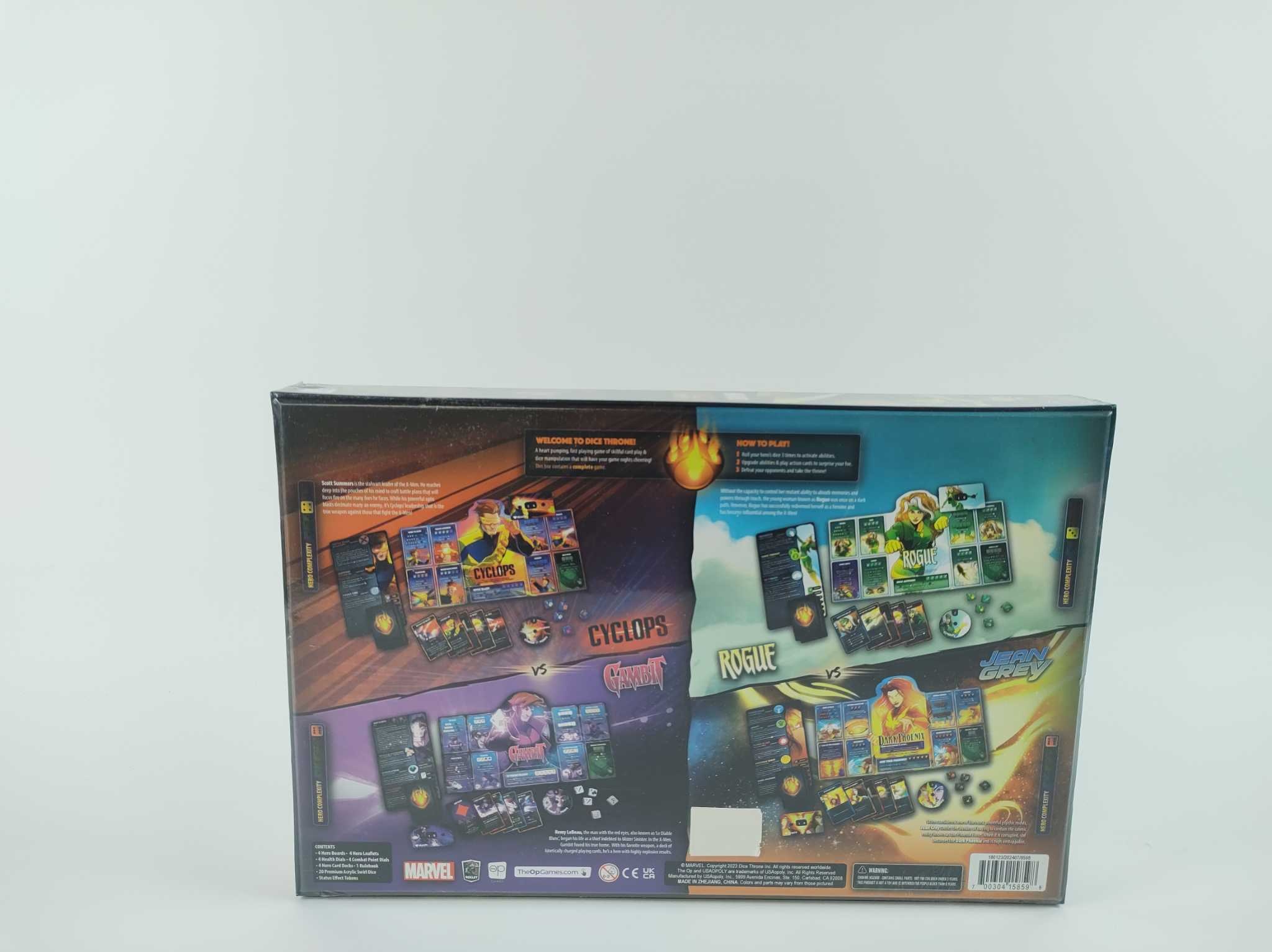 Usaopoly Dobbelspel Marvel Dice Throne: X-Men Box 2. Marvel Dice Throne: X-Men Box 2 is een razendsnel strategisch dobbel- en kaartspel voor 2–6 spelers. Kies Cyclops, Gambit, Rogue of Jean Grey en combineer slimme dobbelworpen met actiekaarten voor krach