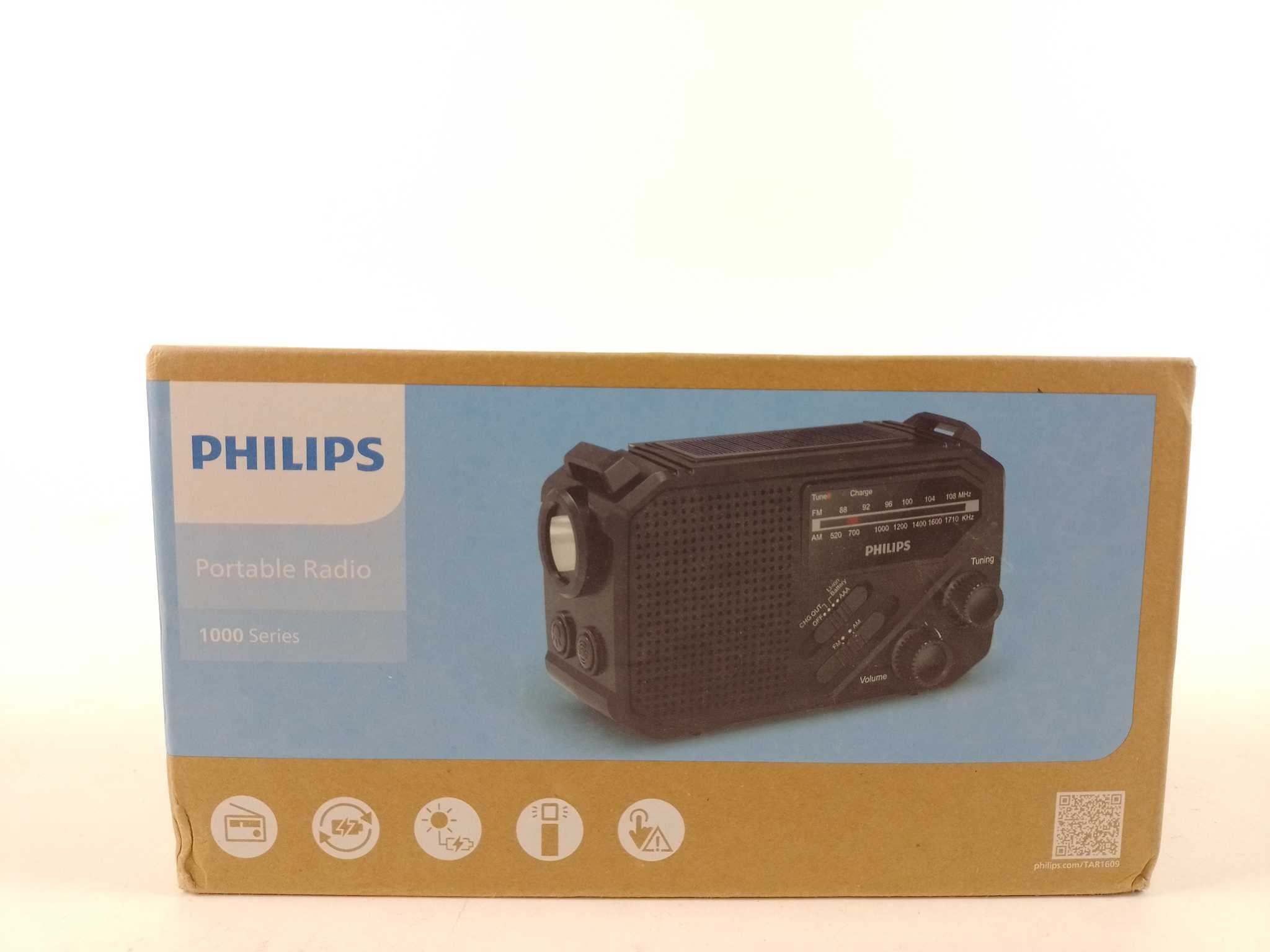 Philips Draagbare Radio TAR1609/00. Met de Philips TAR1609 noodradio blijf je geïnformeerd tijdens kamperen of stroomuitval. Met draaiknopbediening stem je snel af, zelfs zonder internet of app. Luister naar FM en AM, en gebruik de ingebouwde zaklamp en S