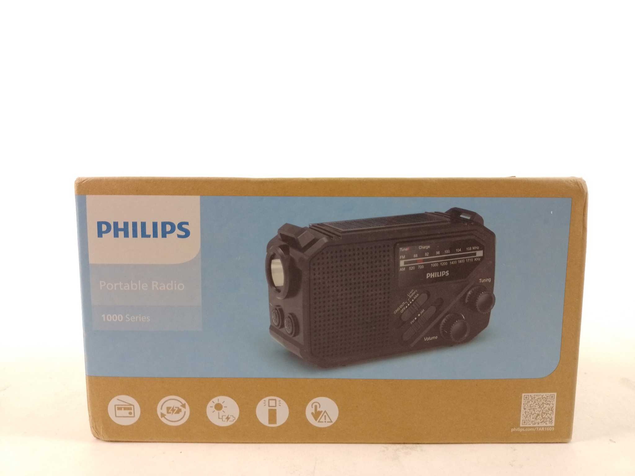 Philips Draagbare Radio TAR1609/00. Met de Philips TAR1609 noodradio blijf je geïnformeerd tijdens kamperen of stroomuitval. Met draaiknopbediening stem je snel af, zelfs zonder internet of app. Luister naar FM en AM, en gebruik de ingebouwde zaklamp en S