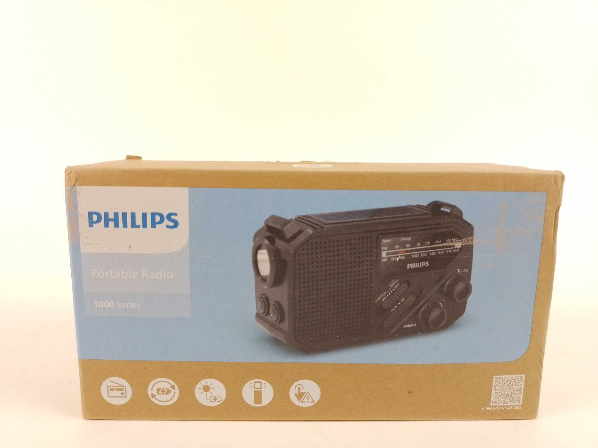 Philips Draagbare Radio TAR1609/00. Met de Philips TAR1609 noodradio blijf je geïnformeerd tijdens kamperen of stroomuitval. Met draaiknopbediening stem je snel af, zelfs zonder internet of app. Luister naar FM en AM, en gebruik de ingebouwde zaklamp en S