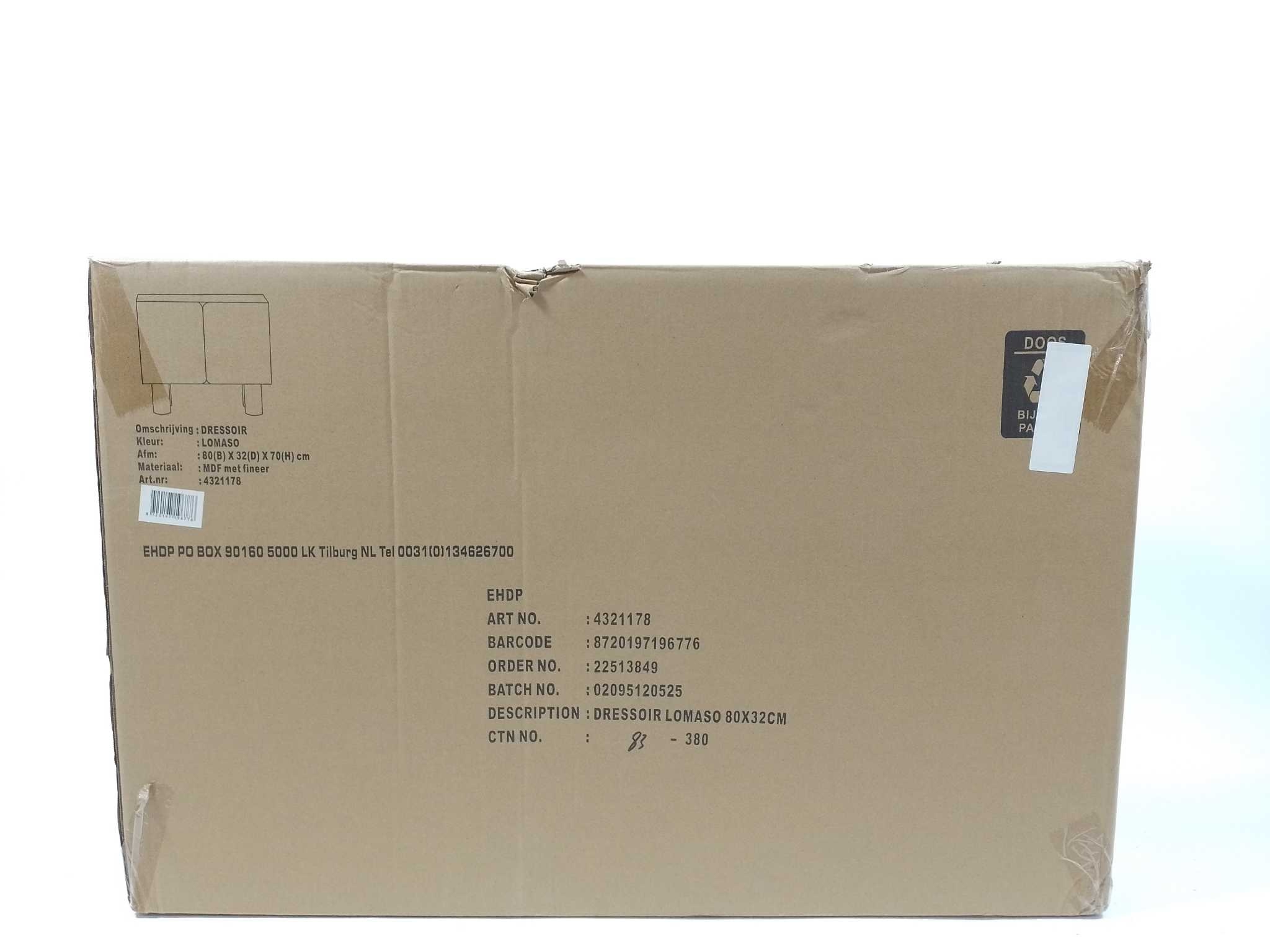 Kwantum Dressoir Lomaso - 80x32x70 cm - Bruin. Het Dressoir Lomaso bruin is een stijlvol en compact meubel voor woonkamer, hal of slaapkamer. Met zijn warme houtlook, moderne Japandi uitstraling en strakke lijnen brengt dit dressoir direct sfeer in huis.