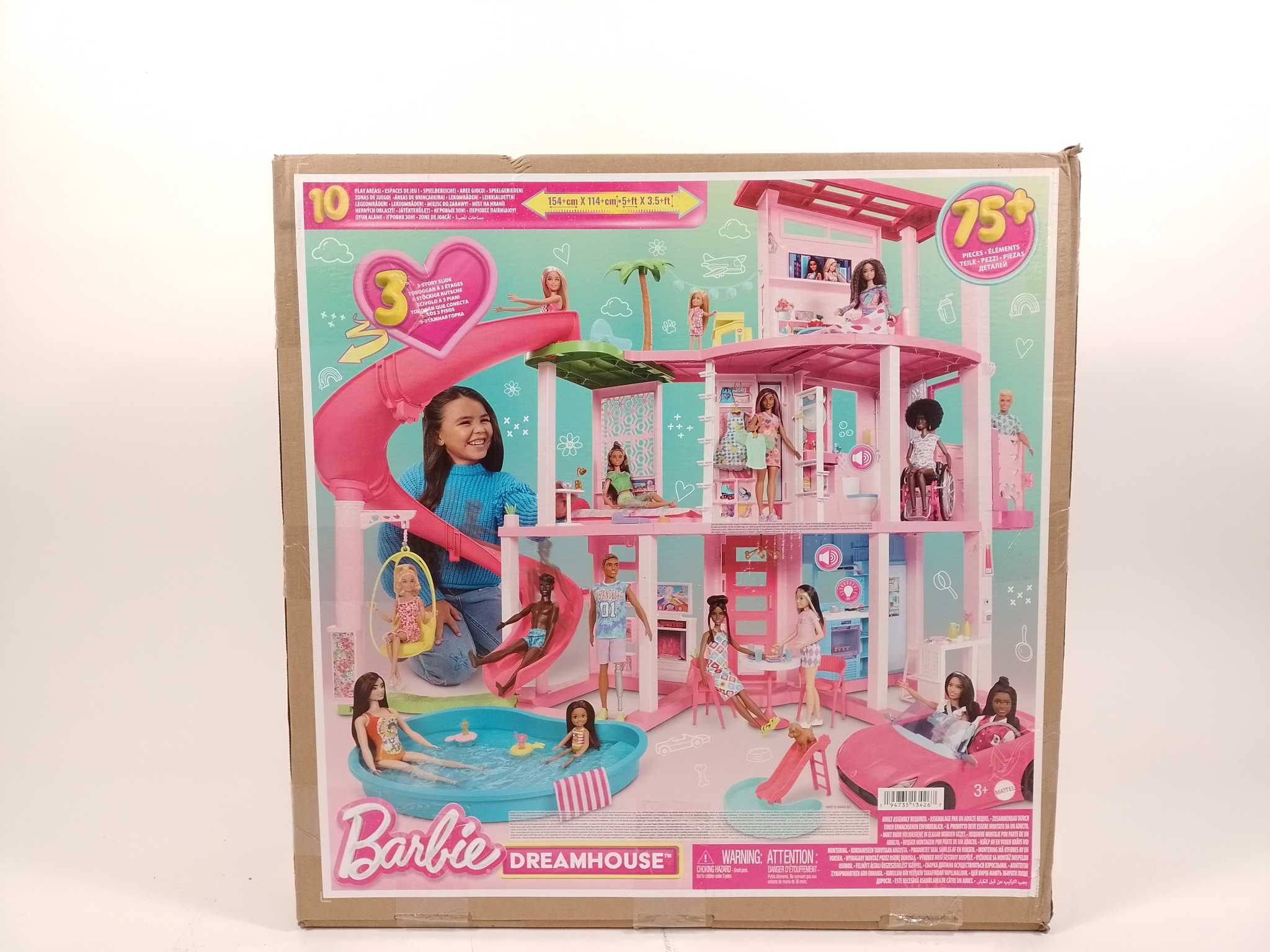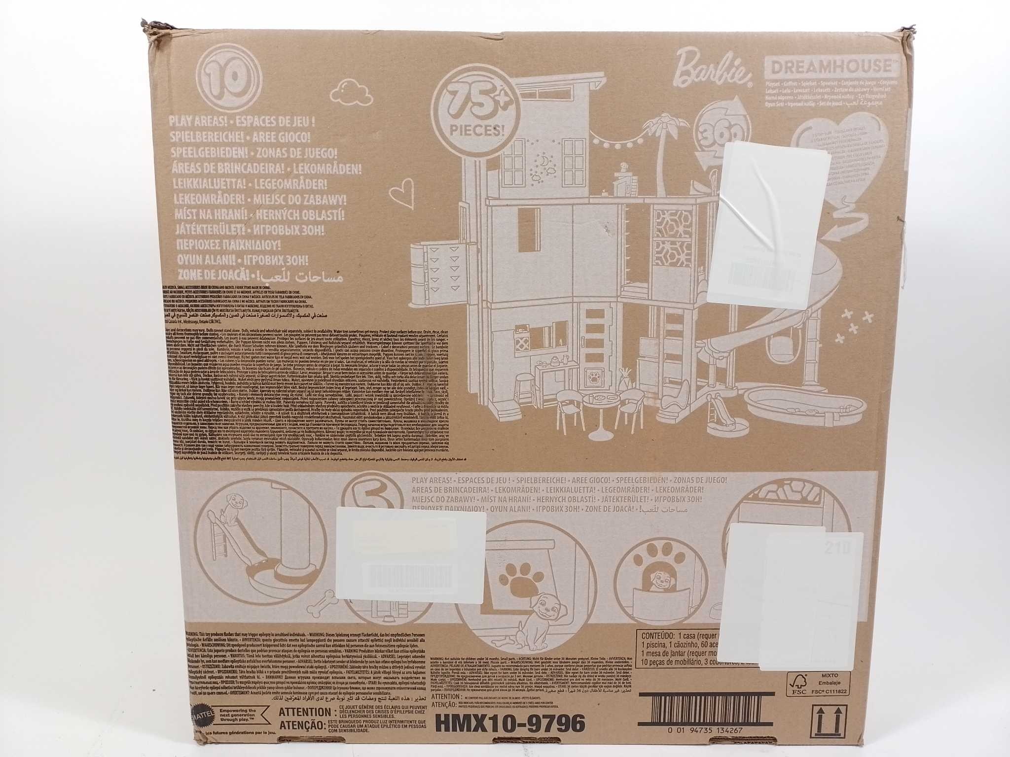Barbie Droomhuis Speelset Pool Party - 114 cm. Barbie Droomhuis Pool Party (HMX10) maakt fantasierijk spelen groots. Het 114 cm hoge huis biedt 3 verdiepingen, 10 leefruimtes en de hoogste spiraalglijbaan naar het zwembad. Met rolstoeltoegankelijke lift, balkon en logeertransformatie slaapt het huis tot vier poppen. Inclusief 75+ accessoires zoals meubels, kook- en badkameritems, decor en puppy-speelsets; licht- en geluidseffecten zorgen voor extra beleving (3× AA, niet inbegrepen). Perfect als centerpiece voor Barbie-fans vanaf 3 jaar; 360° speelplezier, stevig en eenvoudig te monteren. Inclusief zwembad, glijbaan en puppy-lift.