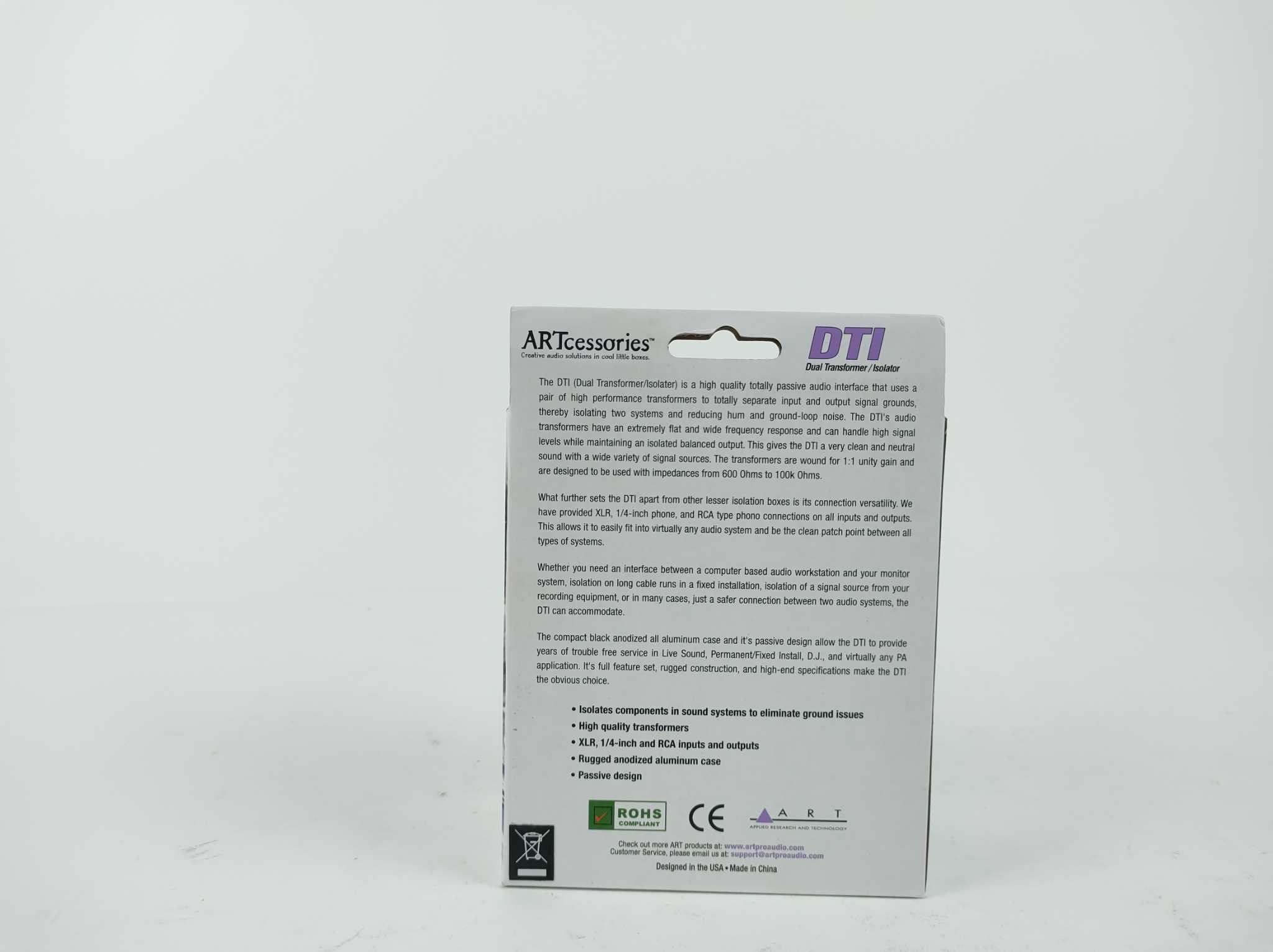 ART DTI Dual Transformer Isolator. De ART DTI dual transformer isolator is een hoogwaardige passieve audio interface voor het storingsvrij koppelen van verschillende audiosystemen. Dankzij de dubbele transformatoren worden ingang en uitgang volledig galva