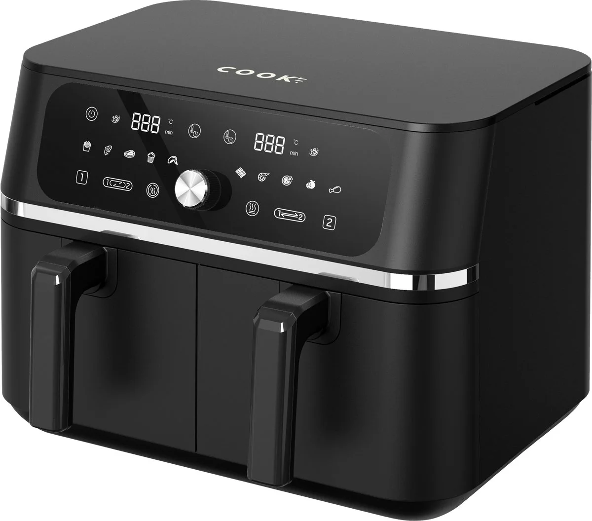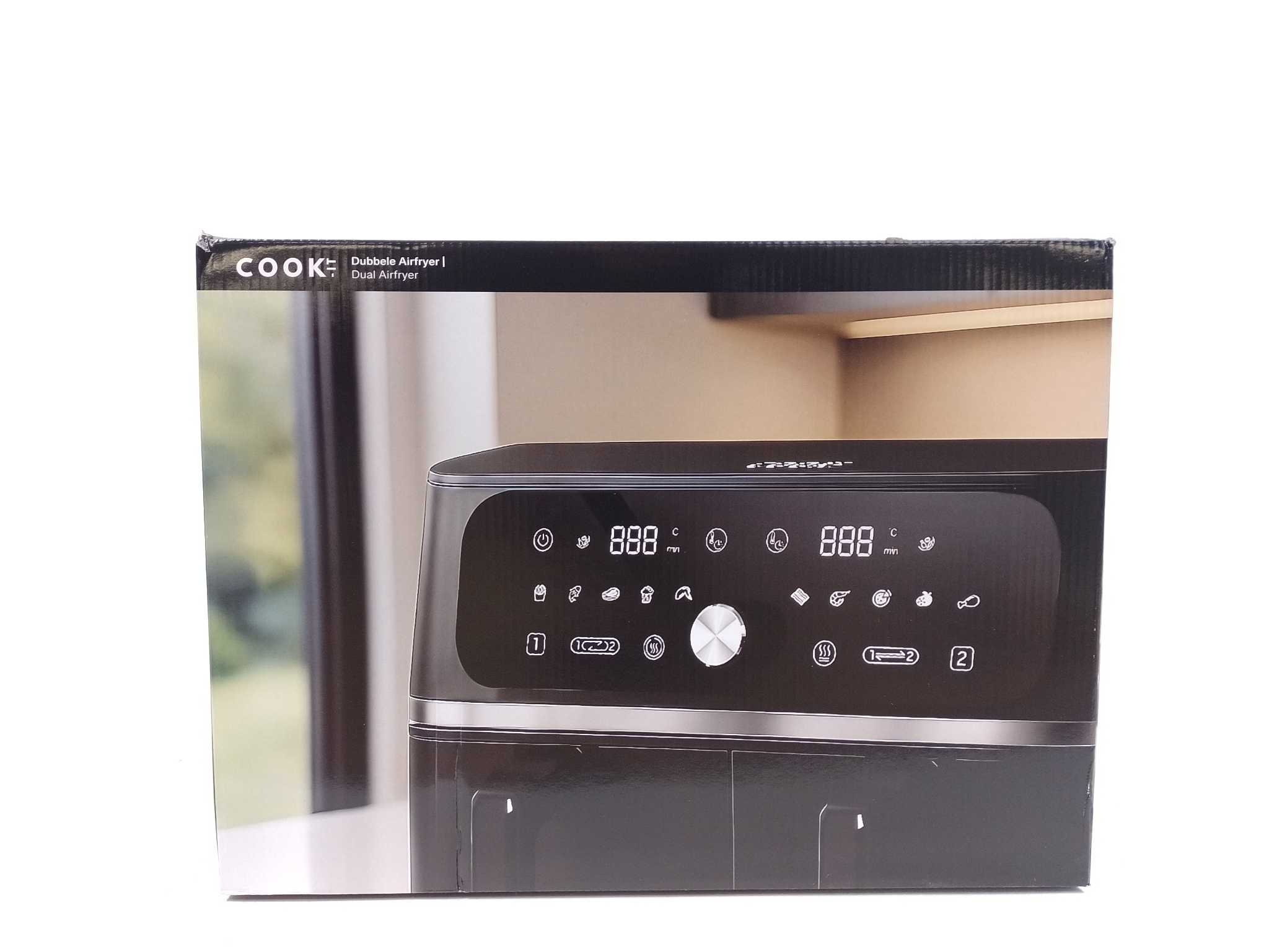 Media Evolution Dubbele Airfryer XXL. Bereid complete maaltijden tegelijk met de dubbele airfryer XXL 9 liter van Media Evolution. Twee manden van 4,5 liter met elk een eigen 1600W-element (totaal 3200W) bakken friet, vis, vlees en groenten gelijktijdig. Gebruik Smart Finish om alles tegelijk klaar te hebben of Match Cook om instellingen te kopiëren. Het touchscreen biedt 11 programma’s, 60–200 °C, timer en warmhoudfunctie. PFAS-vrije antiaanbak en vaatwasserbestendige onderdelen maken schoonmaken simpel. Ideaal voor gezinnen, met krokant resultaat en minder olie bij dagelijks gebruik.