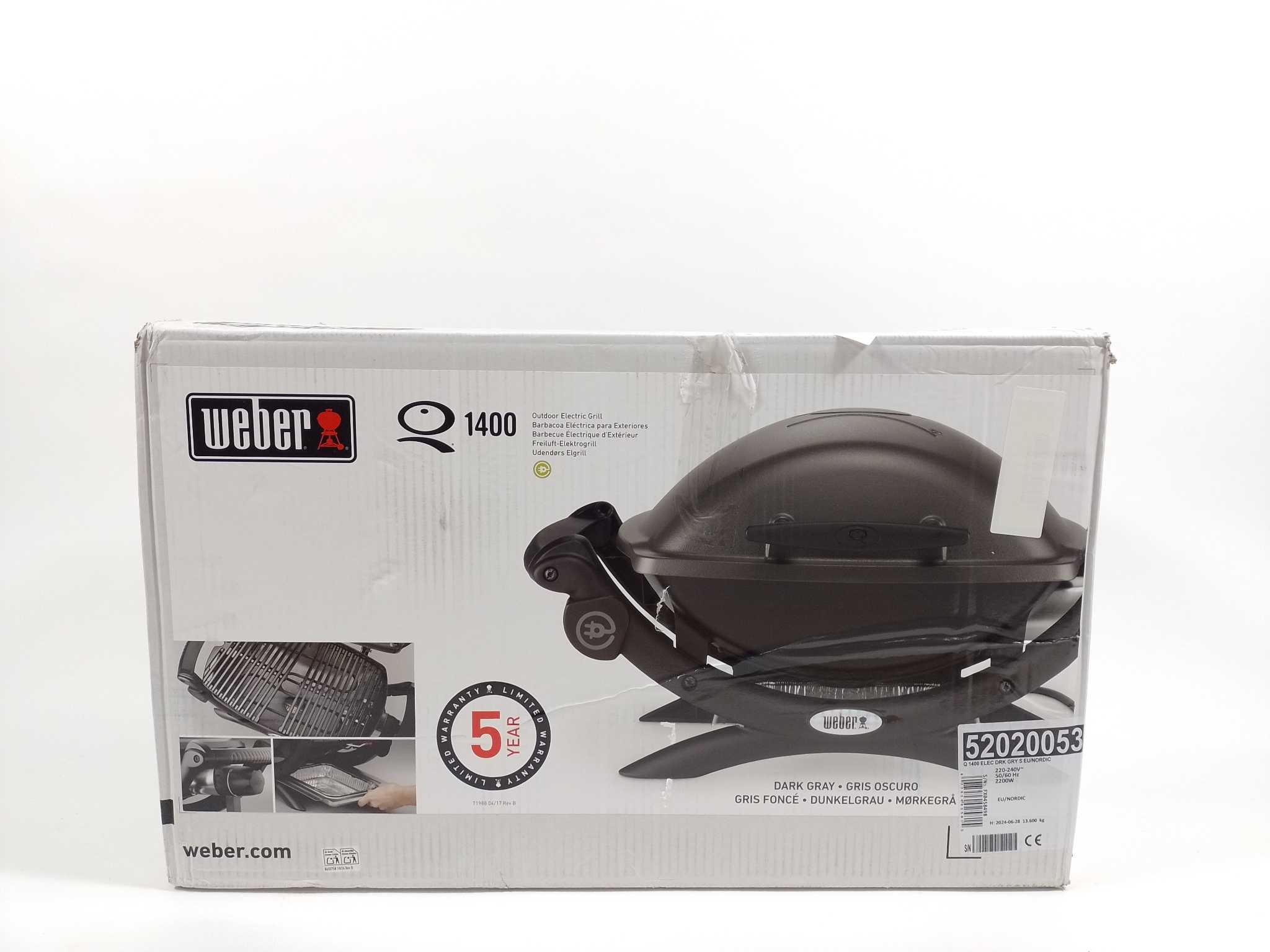 Weber Elektrische Barbecue Q1400 - Zwart. Grill overal met de Weber Q 1400 elektrische barbecue in Dark Grey: compact, krachtig en ideaal voor balkon, tuin of camping. Het 2200 watt vermogen en porselein-geëmailleerde gietijzeren roosters (43×32 cm) leveren gelijkmatige warmte en perfecte grillstrepen. Oneindige warmtecontrole, deksel van gegoten aluminium en uitneembare vetopvangbak maken schoonmaken simpel. Meegeleverd: barbecue, 1,8 m netsnoer, 2-delig rooster en handleiding. Snel warm, weinig rook en stabiel op tafel—voor smaakvol, zorgeloos buiten koken. Energiezuinig, stil en betrouwbaar voor dagelijks grillen met minimale voorbereidingen.
