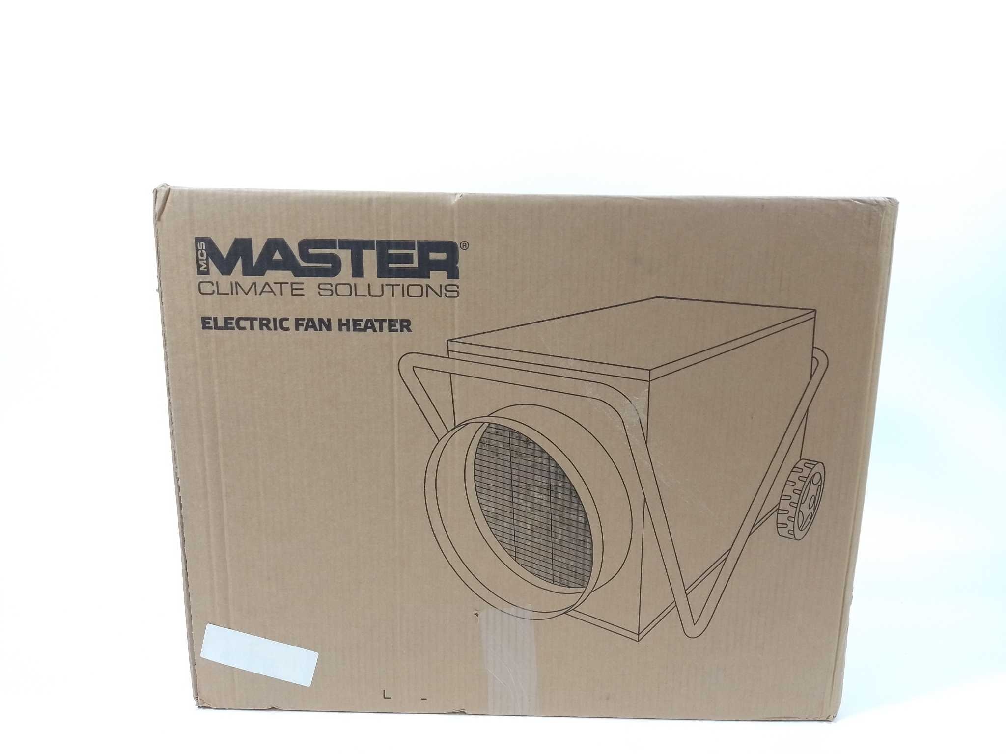 Master Elektrische Heater B18EPR. Verwarm werkplaats, bouwkeet of magazijn snel met de Master B18 EPR elektrische luchtverhitter 18 kW (400V). Kies 9 of 18 kW of gebruik alleen ventilatie; de krachtige luchtstroom van 1700 m³/u verspreidt warmte gelijkmat