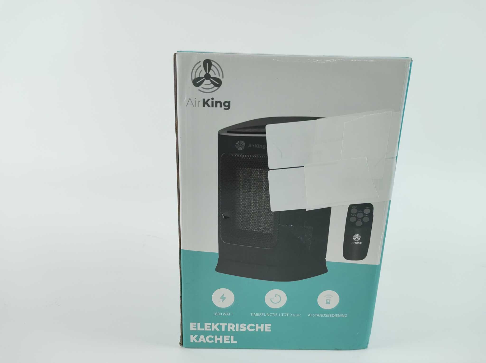 AirKing Elektrische Kachel 1800W - Zwart. De AirKing AKEK11BK elektrische keramische kachel verwarmt snel en efficiënt dankzij PTC-technologie. Kies uit 2 warmtestanden (900/1800 W) en stel de temperatuur in van 10–30°C. De 80° oscillatie verspreidt warmt