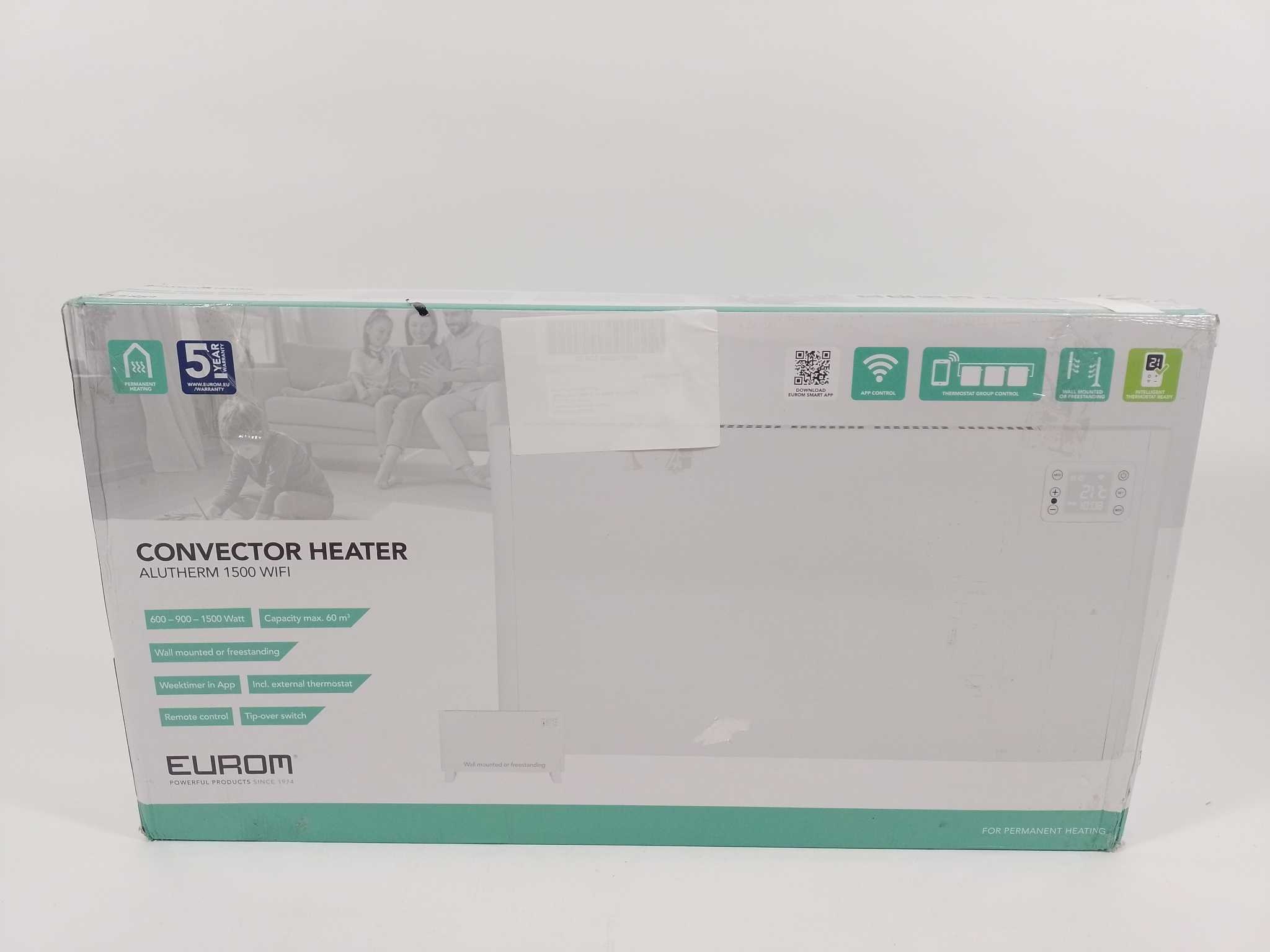 Eurom Elektrische Kachel Alutherm 1500 - Wit. Eurom Alutherm 1500 WiFi is een slanke, muur-gemonteerde convectorkachel voor snelle, stille bijverwarming. Met 1500 W en slimme thermostaat verwarmt hij tot ca. 60 m³ efficiënt. Bedien op afstand via de Eurom Smart App of meegeleverde afstandsbediening, stel timers in en houd de temperatuur constant. Oververhittingsbeveiliging vergroot de veiligheid. Inclusief muurbeugel en bevestigingsmateriaal. Ideaal voor woonkamer, slaapkamer of kantoor: strak design, eenvoudige bediening en energiezuinig comfort met gelijkmatige convectiewarmte zonder droge lucht. Discreet display toont instelling en status in gebruik.