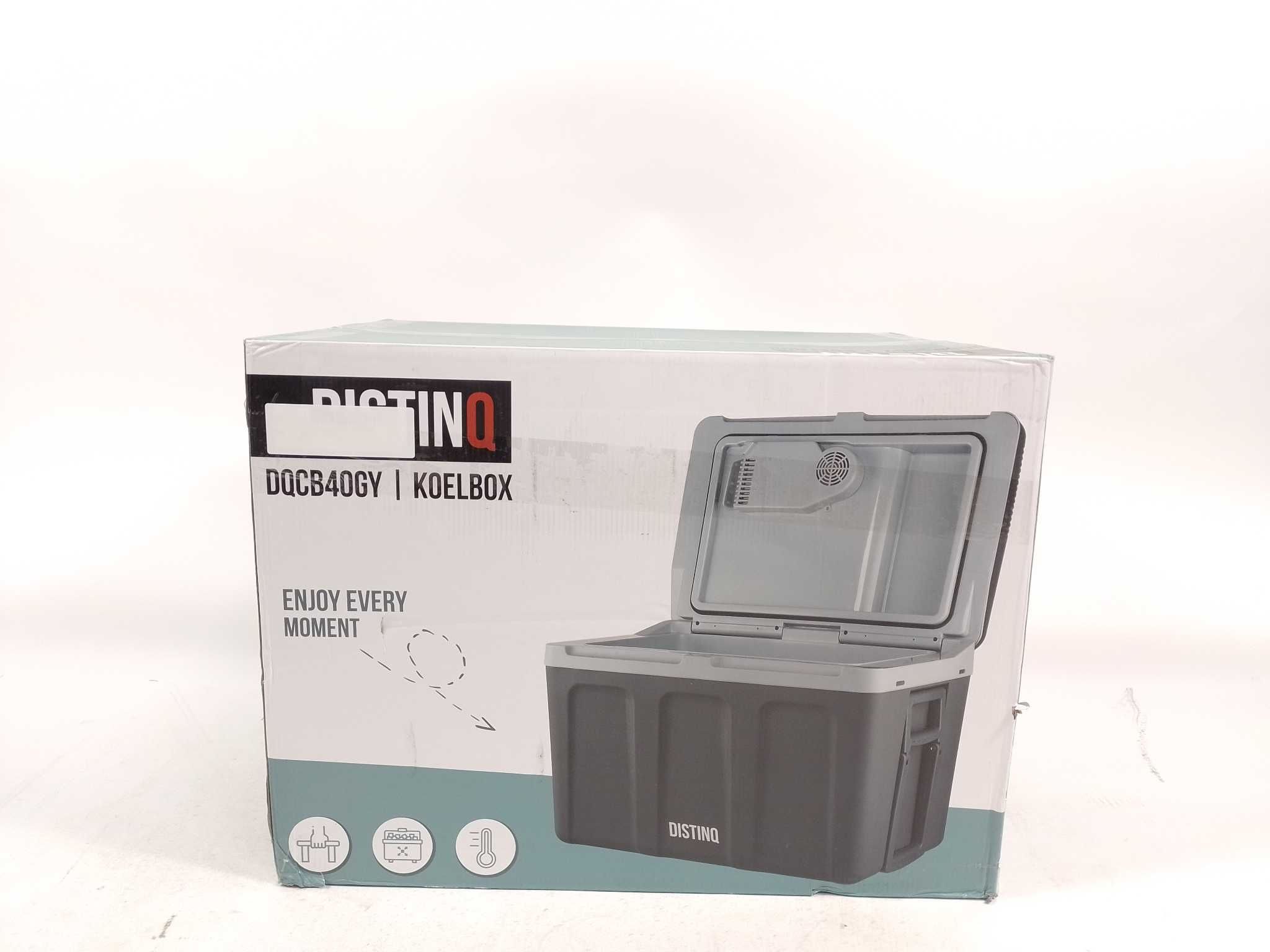 DistinQ Elektrische Koelbox 40L. De DistinQ elektrische koelbox 40L werkt op zowel 12 V als 230 V en koelt tot -18 °C onder de buitentemperatuur. Hij biedt ook verwarmfunctie tot 65 °C. Dankzij het uitschuifbare handvat en de wieltjes is hij eenvoudig te vervoeren. De ruime inhoud van 40 liter is ideaal voor lange trips. Wordt geleverd met auto- en netstroomkabels, en is perfect voor camping, auto en uitstapjes.