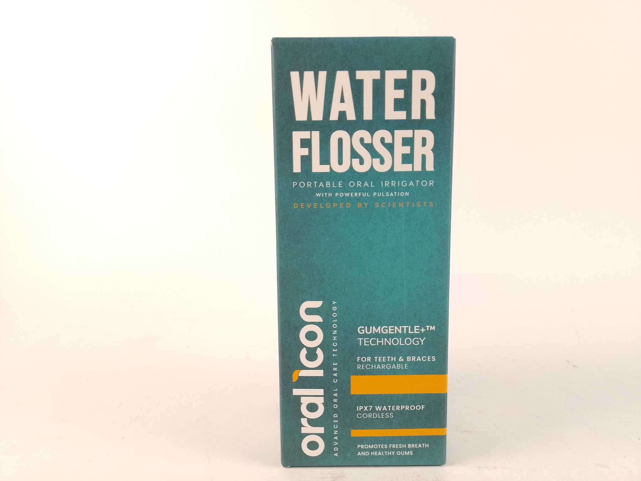 Oral Icon Elektrische Waterflosser. Reinig je gebit grondig met de Oral Icon elektrische waterflosser, ideaal voor tandvleesrand en tussenruimtes. De pulserende straal masseert zacht en verwijdert effectief plak en etensresten. Kies uit 5 drukstanden (40–
