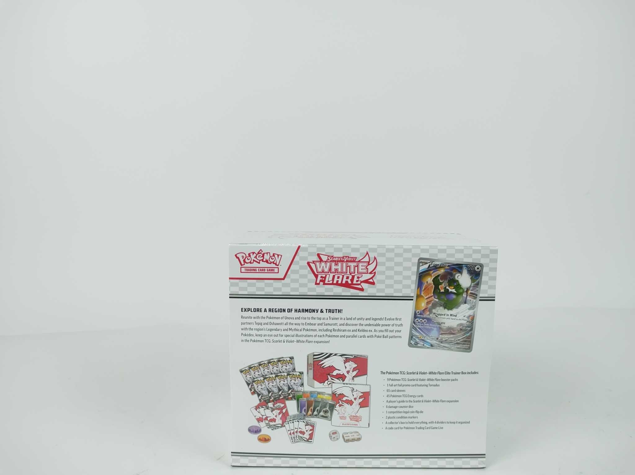 Pokémon Elite Trainer Box - Scarlet & Violet - White Flare. De Pokémon Scarlet & Violet White Flare Elite Trainer Box is een complete verzamelbox voor fans die hun collectie en decks willen versterken. Deze box bevat 9 White Flare booster packs, een full-