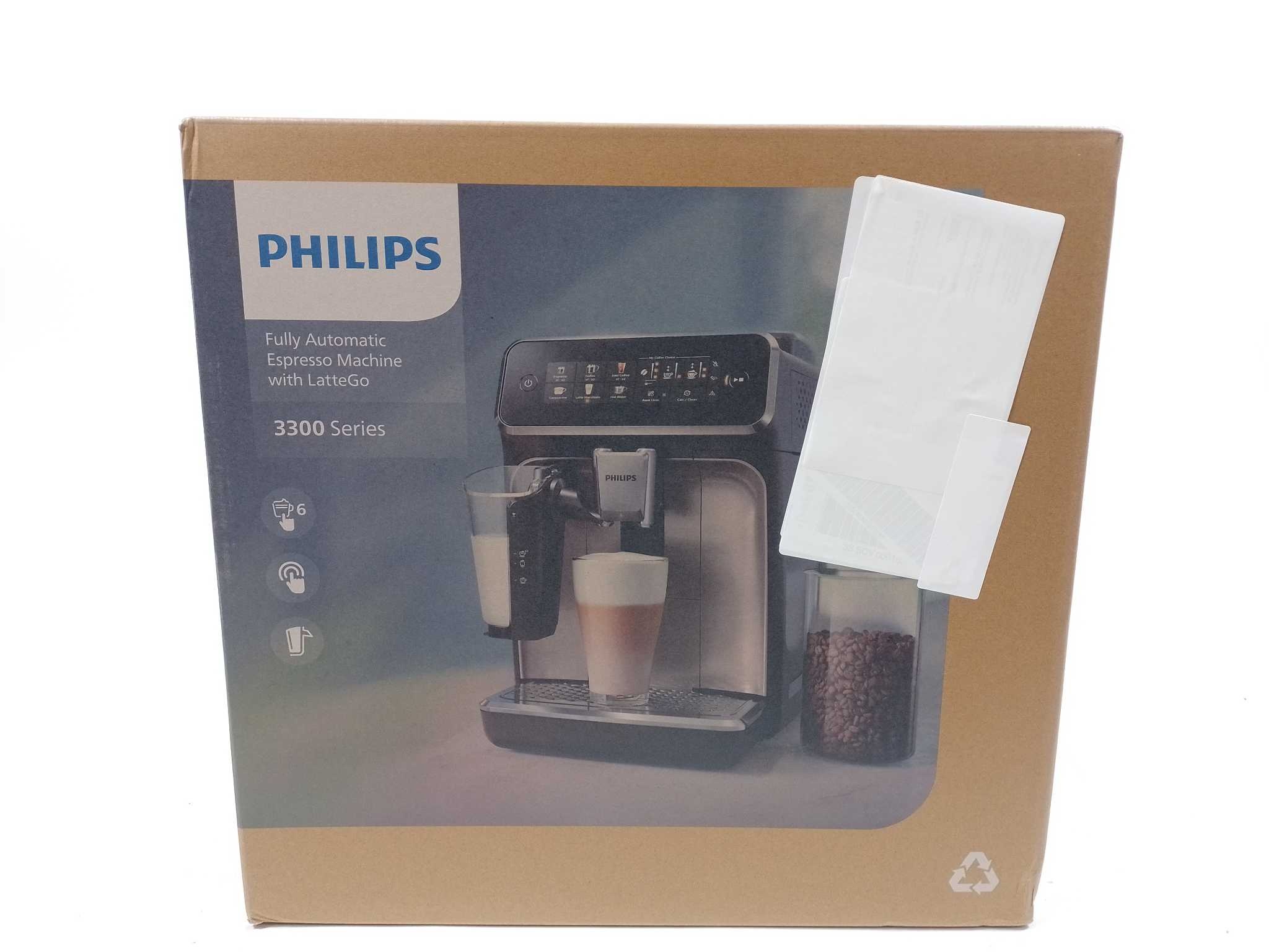 Philips Espressomachine LatteGo EP3341/50. De Philips 3300-serie LatteGo EP3341/50 volautomatische espressomachine zet met één druk espresso, koffie, cappuccino, latte macchiato en ijskoffie. Het LatteGo-melksysteem maakt zijdezacht schuim en spoel je in