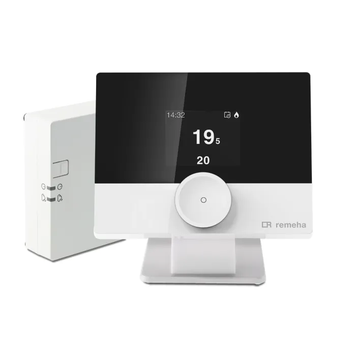 Remeha eTwist RF Startersset. Met de Remeha eTwist RF startersset regel je cv-ketel of warmtepomp draadloos met een slimme thermostaat. Plaats hem waar jij comfort voelt: aan de muur met de muurplaat of los op tafel met de standaard. Via de eTwist app ste