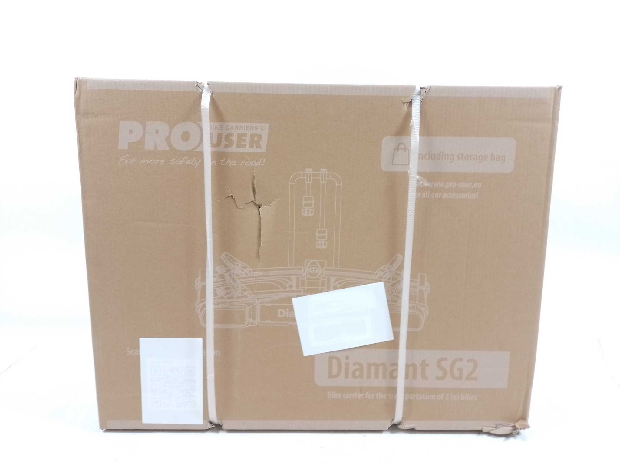 Pro-User Fietsendrager Diamant SG2. De Pro-User Diamant SG2 is een robuuste fietsendrager, speciaal ontworpen voor het vervoeren van twee fietsen, inclusief elektrische modellen, met een maximaal draaggewicht van 60 kg. Dankzij de gepatenteerde, afsluitb