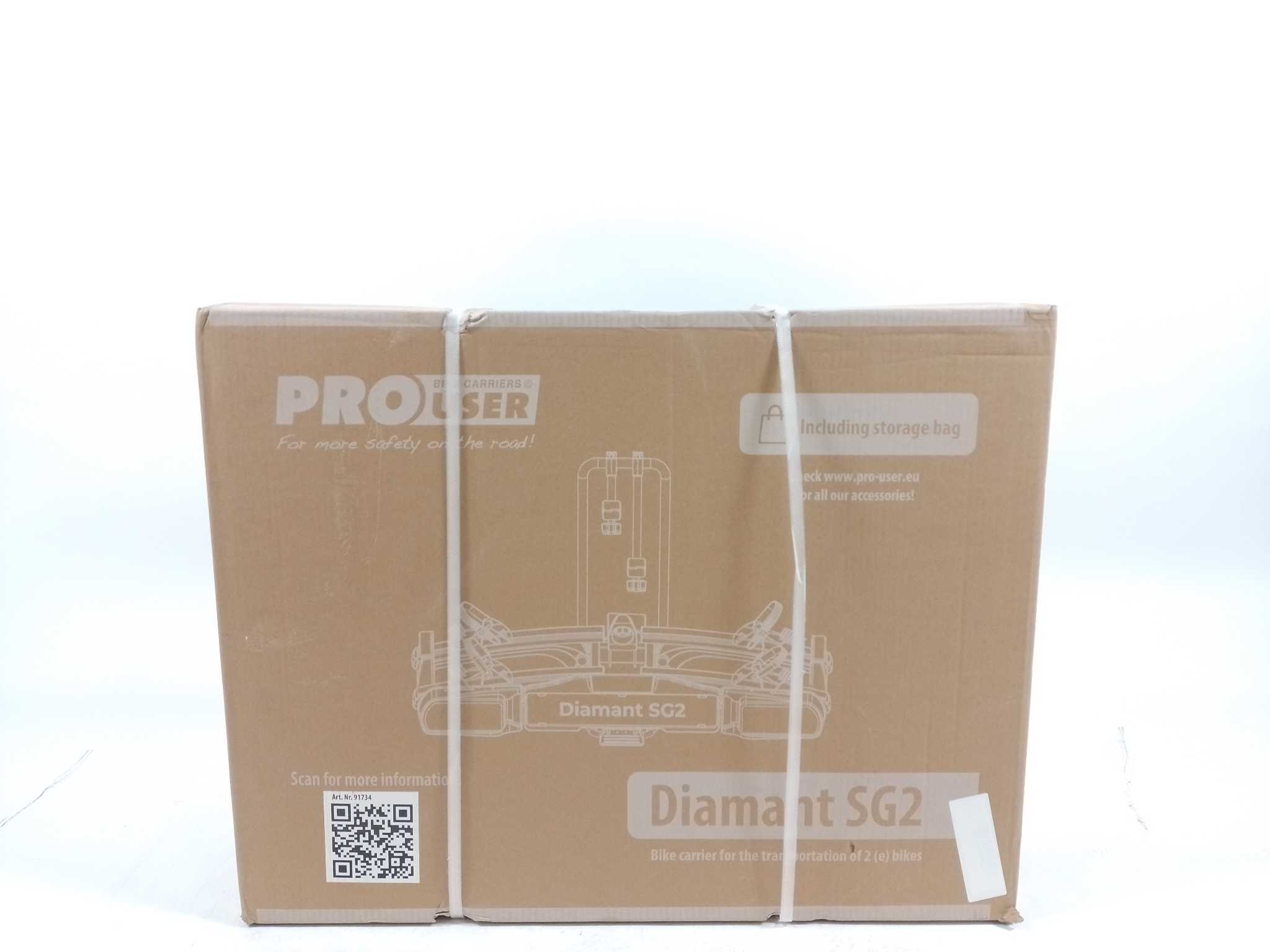 Pro-User Fietsendrager Diamant SG2. De Pro-User Diamant SG2 is een robuuste fietsendrager, speciaal ontworpen voor het vervoeren van twee fietsen, inclusief elektrische modellen, met een maximaal draaggewicht van 60 kg. Dankzij de gepatenteerde, afsluitb